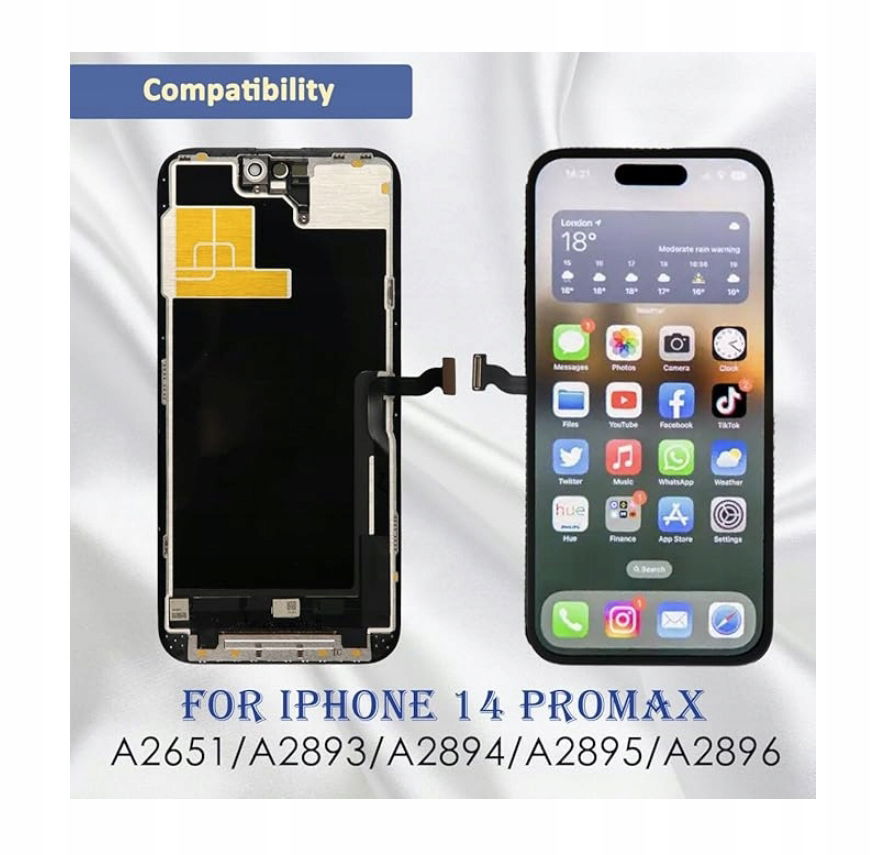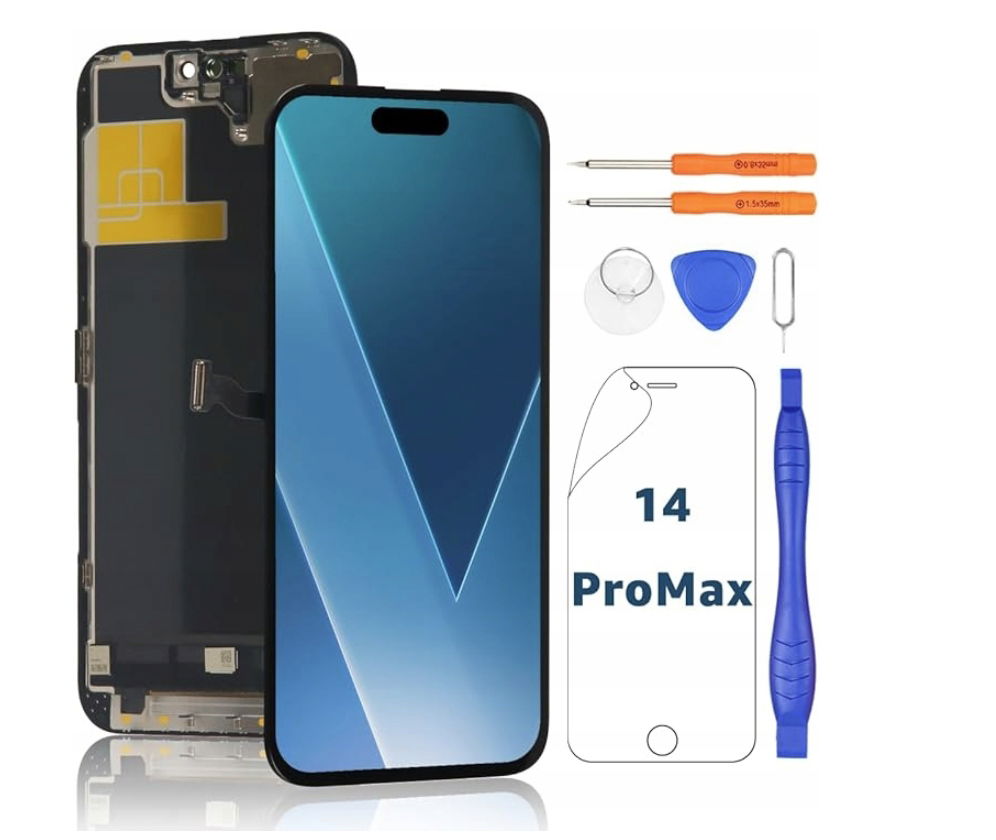 ⭐「ZAWARTOŚĆ PRODUKTU」Ekran iPhone'a 14 Pro Max + zestaw narzędzi naprawczych + folia ochronna na ekran