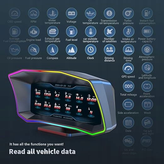 HUD Wprowadzenie - nowy zaktualizowany model OBD+GPS LCD, integrujący wiele funkcji, takich jak OBD+GPS+miernik nachylenia+akcelerometr+oświetlenie otoczenia widmo, zapewnia zupełnie nowe wrażenia z jazdy