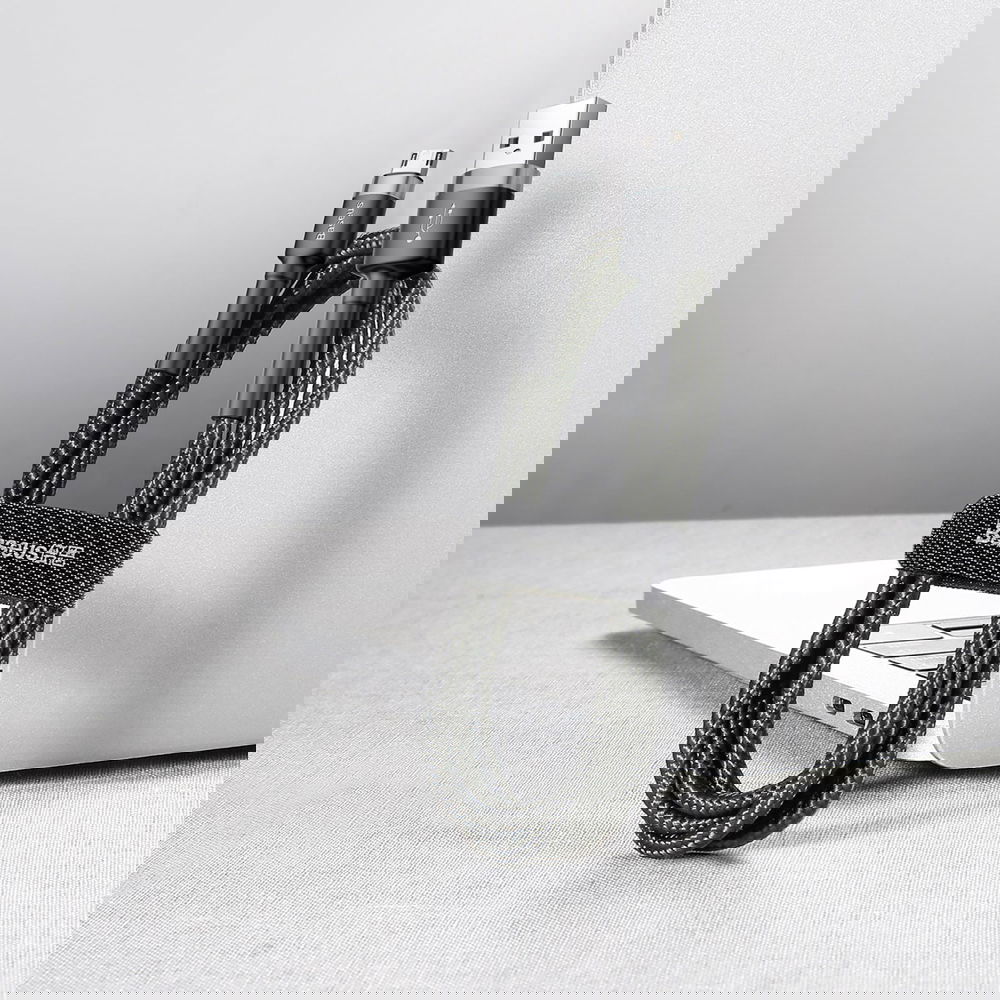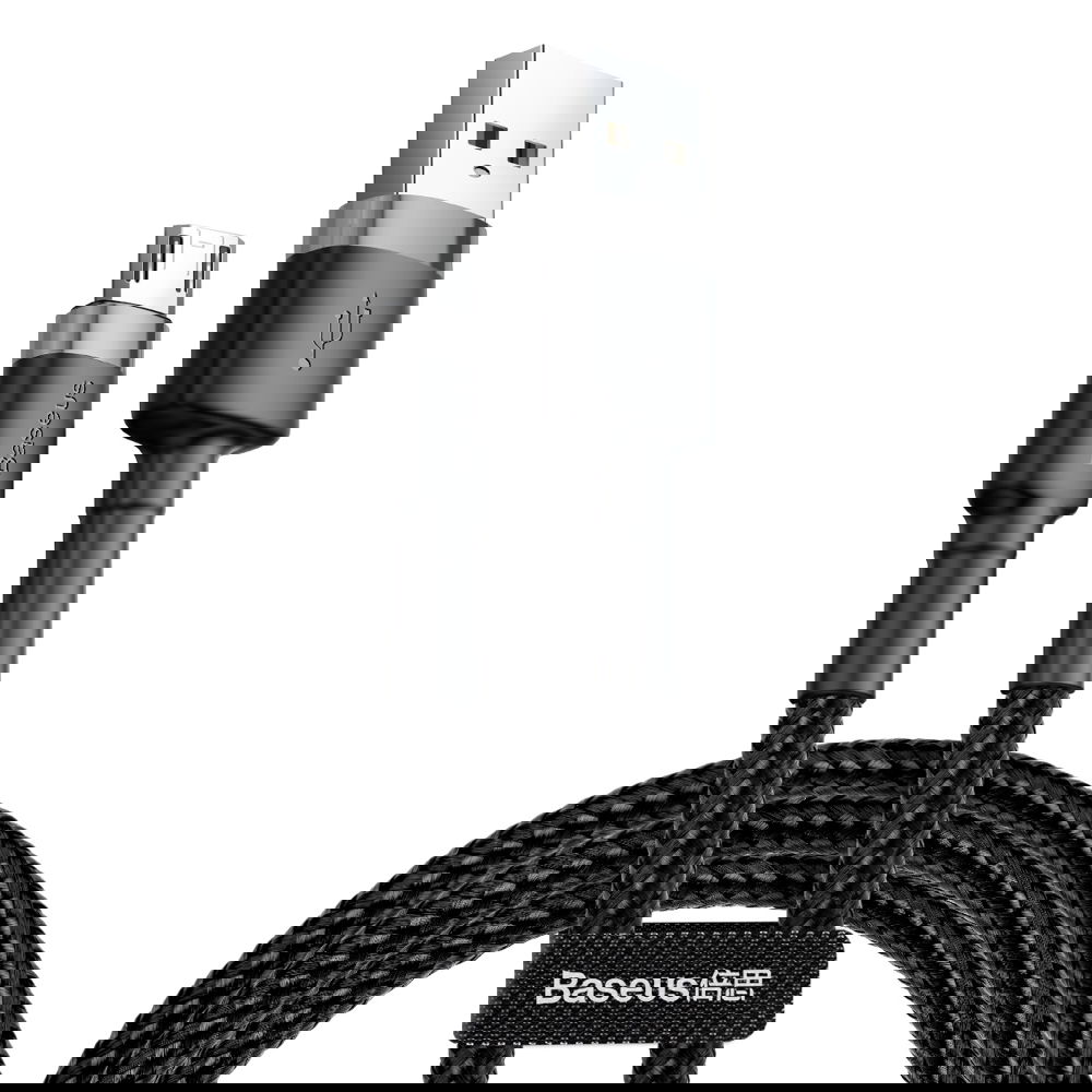 Wytrzymały elastyczny kabel przewód USB microUSB 1.5A 2M czarno-szary