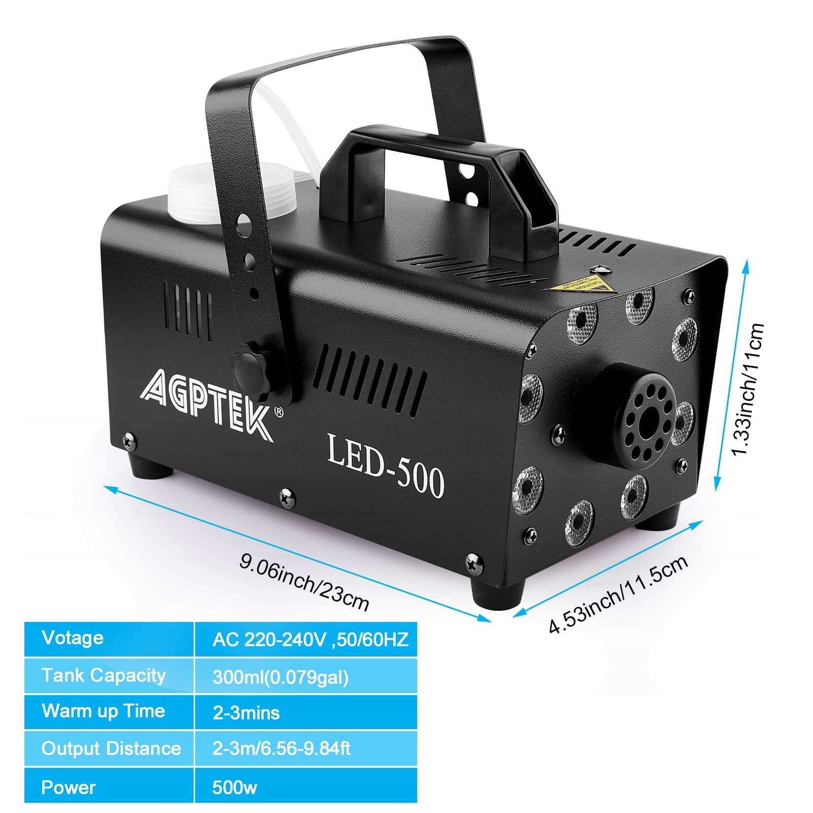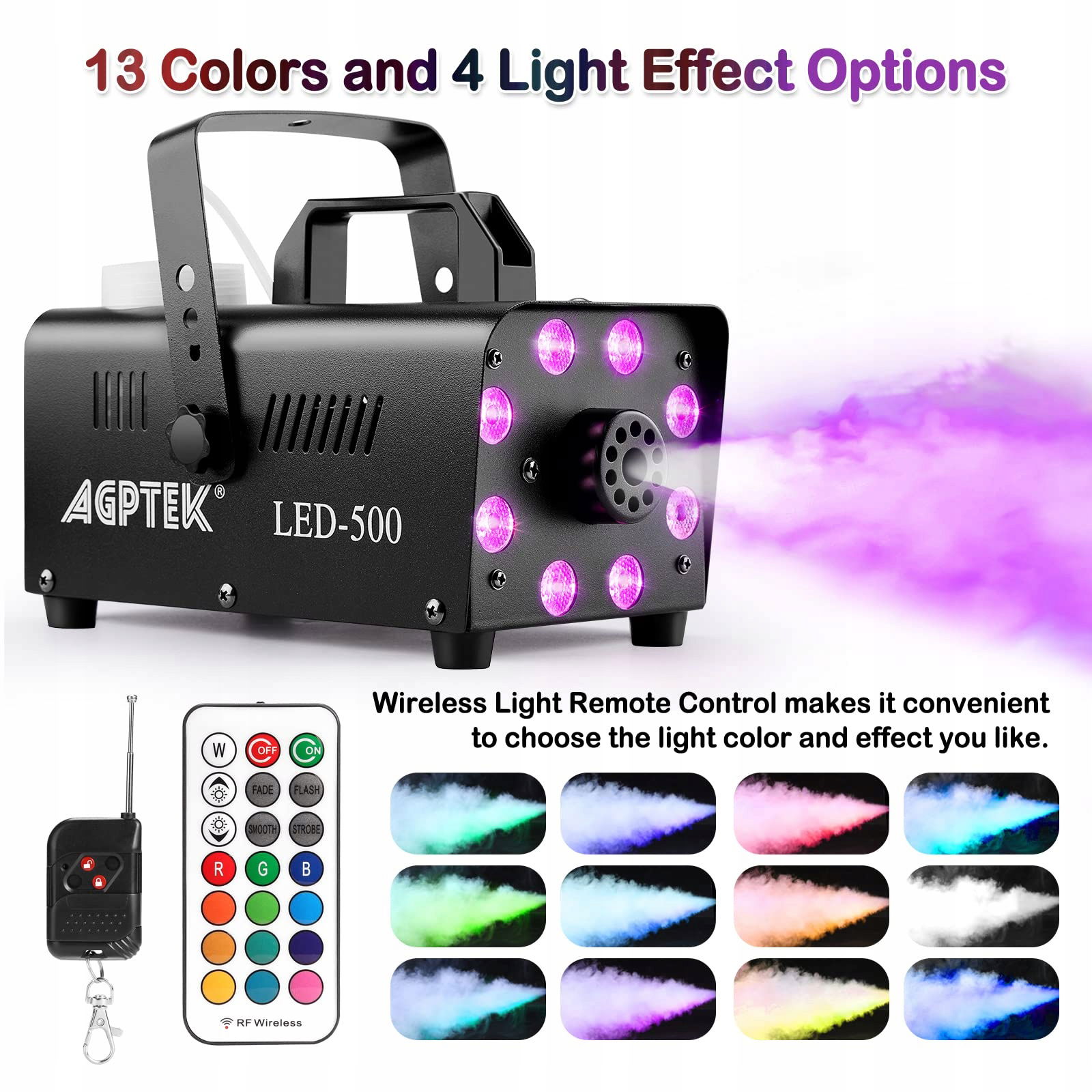 AgptEK Wytwornica dymu 500W z LED RGB, 13 kolorów, 2000 CFM