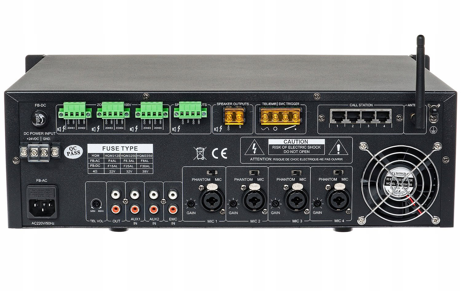 - MASTER/AUX/MIC/MP3/BLUETOOTH/SYRENA/GONG