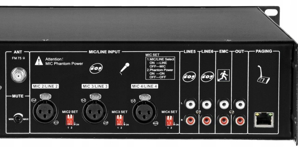 HQM4240WF/DA / HQM4240/MT to wzmacniacz, który oferuje nie tylko moc i wszechstronność, ale także pełną kontrolę nad nagłośnieniem dzięki możliwości podłączenia mikrofonu pulpitowego. Dedykowane wejście RJ45 umożliwia łatwe połączenie mikrofonu, który pozwala na zarządzanie 6 strefami nagłośnienia z jednego miejsca. To rozwiązanie idealne dla tych, którzy potrzebują szybkiej i wygodnej kontroli nad komunikatami i muzyką w różnych pomieszczeniach.