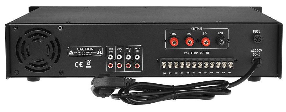 Wzmacniacz został wyposażony w 3 wejścia mikrofonowe oraz 3 wejścia liniowe AUX, umożliwiające podłączenie wielu źródeł sygnału – mikrofonów, odtwarzaczy muzyki, komputerów czy systemów komunikatów głosowych. Dzięki temu urządzenie może pełnić funkcję centralnego punktu sterowania systemem audio w całym obiekcie. Dodatkowe wyjście liniowe AUX pozwala na podłączenie kolejnego wzmacniacza lub rejestratora dźwięku.