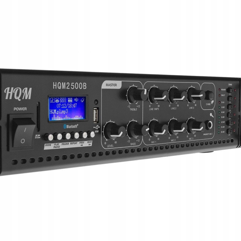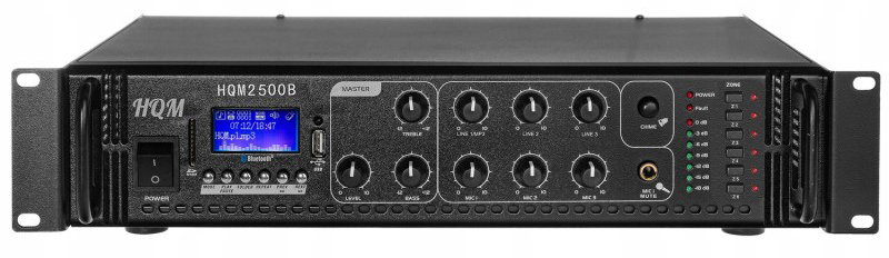 Wzmacniacz radiowęzłowy HQM2500B to najnowszej generacji produkt, zaprojektowany do celów realizacji profesjonalnych i bezproblemowych systemów nagłaśniania audio. Stanowi najnowszą odsłonę zaawansowanych technologicznie wzmacniaczy marki HQM- High Quality Music. Wykorzystana w urządzeniu wystarczająca moc wyjściowa oraz wyjścia z podziałem na 6 stref głośników, pozwolą na zasilenie średnich i dużych systemów nagłaśniających. Urządzenie cechuje się prostą obsługą, bezawaryjnością funkcjonowania oraz skutecznością przez 24 godziny na dobę. Dodatkową zaletą wzmacniacza HQM 2500B jest Bluetooth.