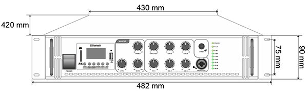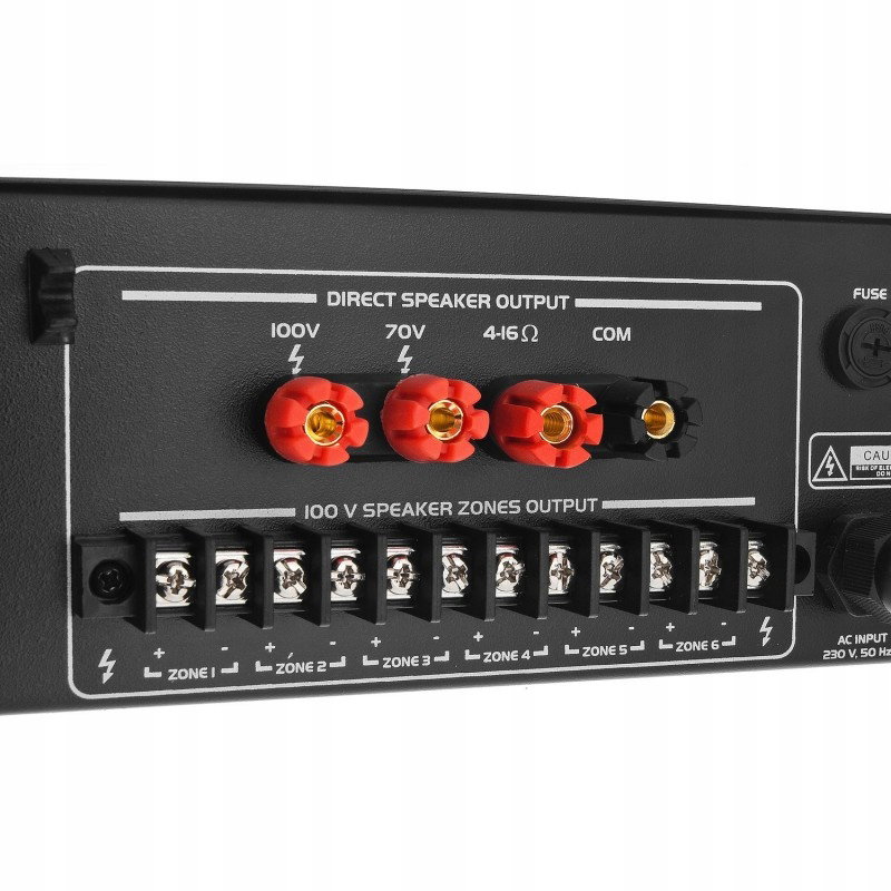 - wyjścia linii głośnikowych: 4~16Ω, 70V, 100V
