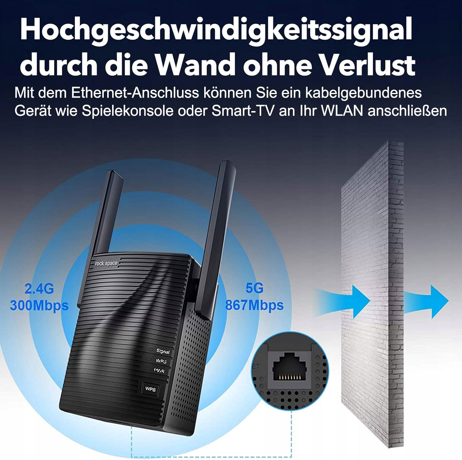 Wzmacniacz Rockspace Wi-Fi 1200 biały 5 GHz 867 Mbps LAN 300 Mbps