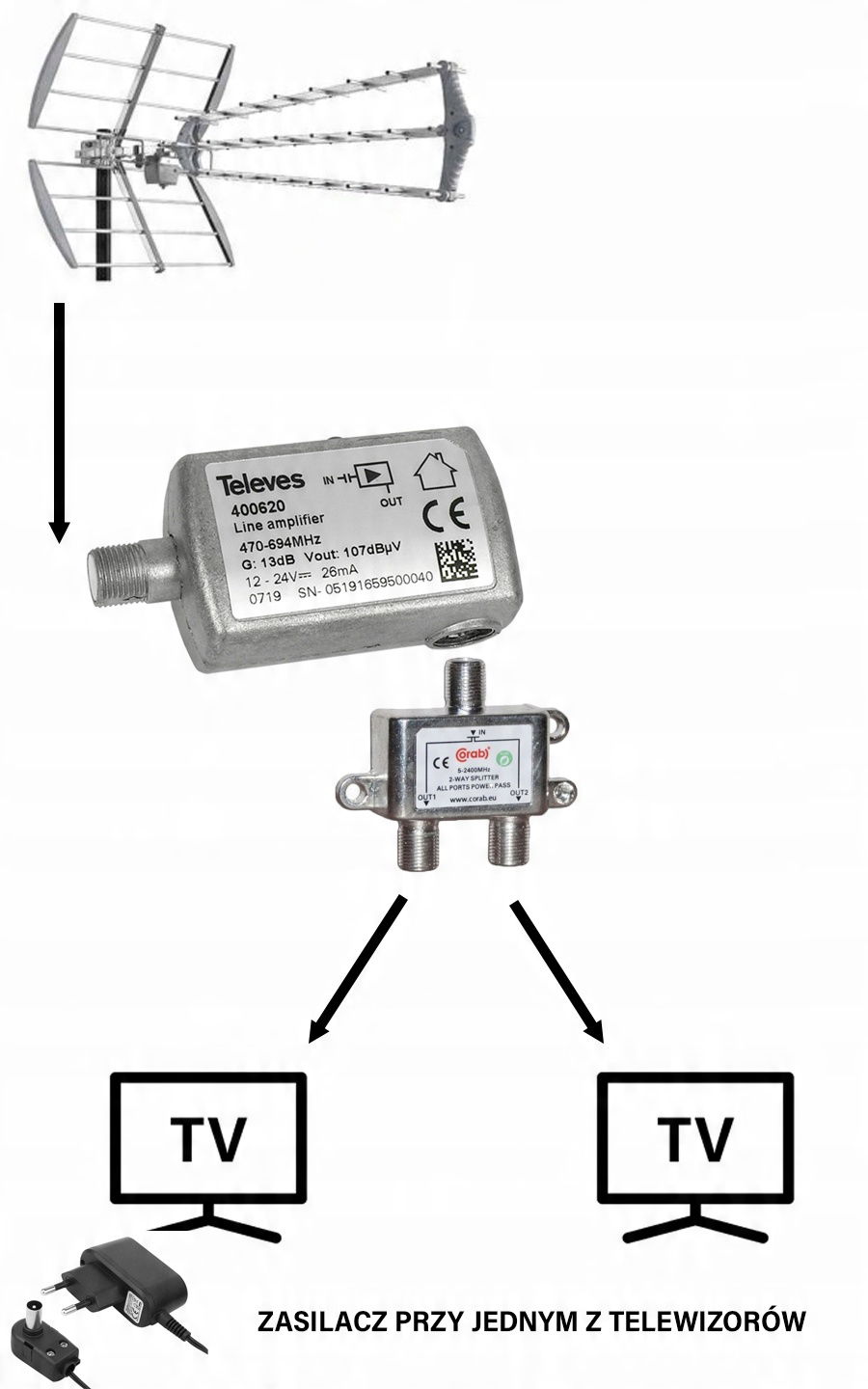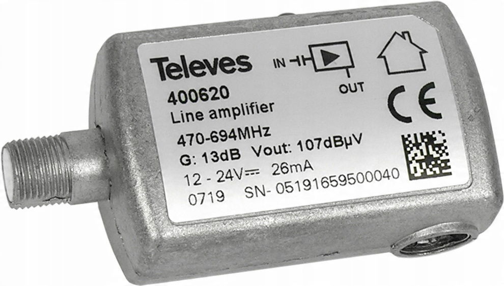Wzmacniacz RTV liniowy Line Amplifier 470-694 MHz 13 dB UHF Televes 4006