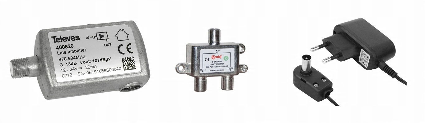 Opcjonalnie w innej ofercie można dokupić rozgałęźnik DVBT i zasilacz z wtykiem dla DVBT.