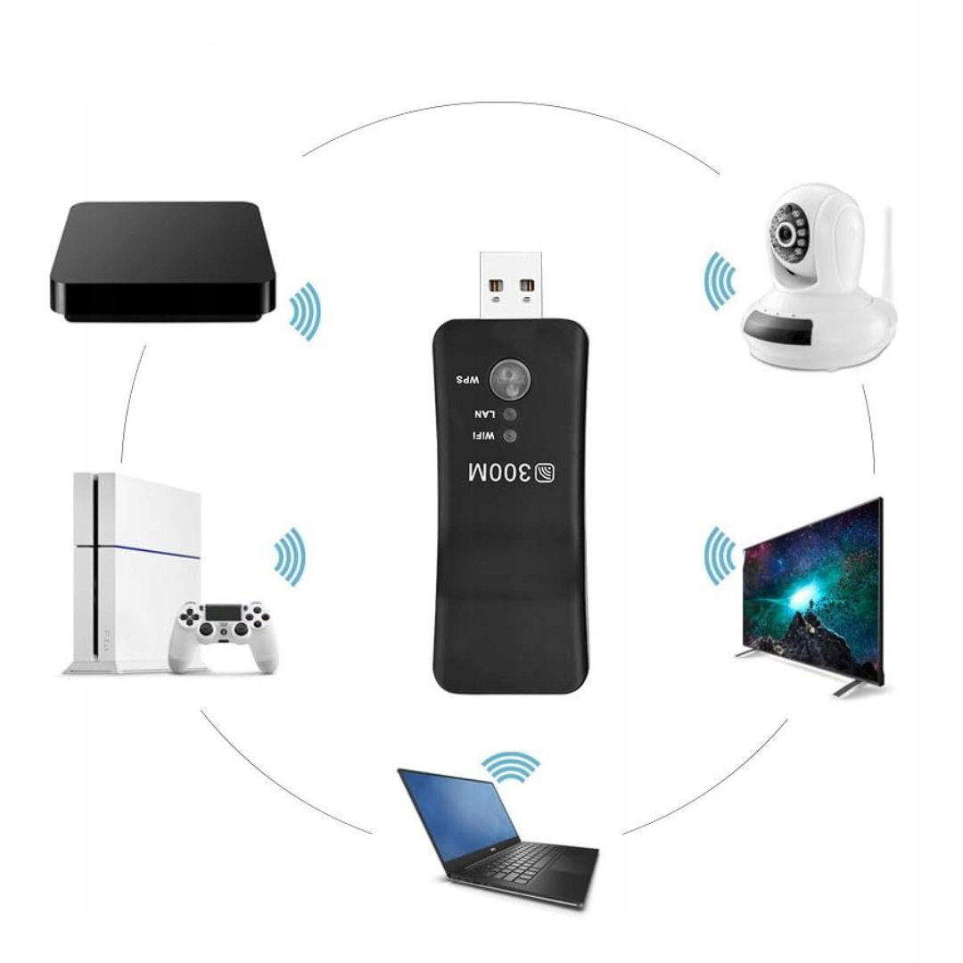 - Wzmacniacz wysokiej prędkości: przenośny repeater USB umożliwia urządzeniom dostęp do Internetu, poprawiając zasięg sieci, zwiększając prędkość połączenia oraz pozwalając na podłączenie większej liczby urządzeń, takich jak smart TV, laptop, telefon komórkowy czy tablet. Dzięki temu wzmacniaczowi sygnału można osiągnąć prędkość do 300 Mb/s, co gwarantuje płynne i szybkie korzystanie z Internetu. Uwaga: urządzenie nie jest kompatybilne z telewizorami.