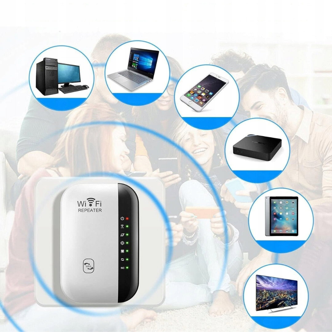 - Universal Compatibility: wzmacniacz Wi-Fi jest kompatybilny z 802.11b/g/n/a/ac, działa z każdą siecią bezprzewodową, routerem i urządzeniami Wi-Fi, co oznacza, że współpracuje z każdym standardowym routerem lub bramką.