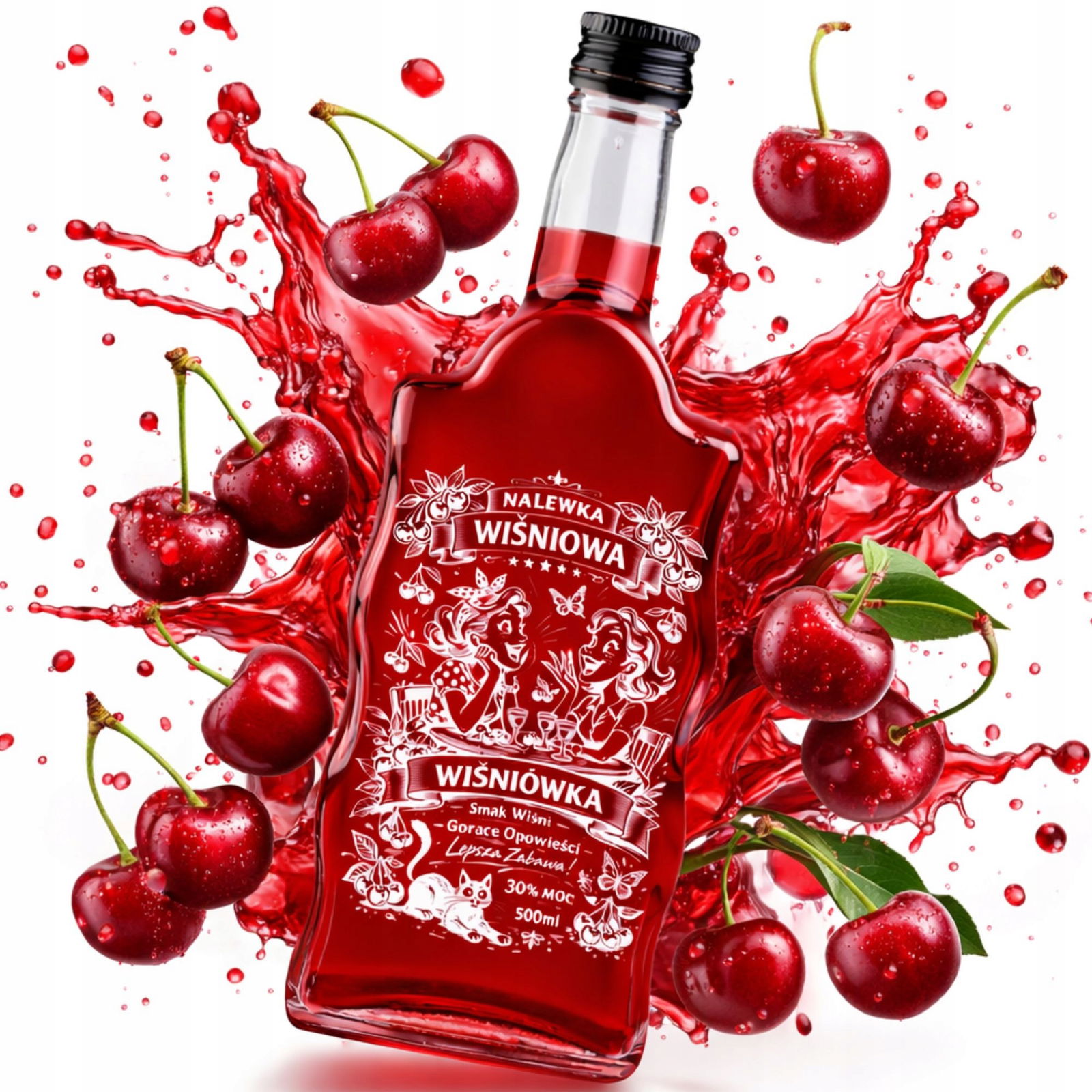 Motyw wiśni, rozmów przy stole i klasycznej etykiety w stylu retro sprawia, że to gotowa butelka 0,5 l na prezent – bez dodatkowych etykiet.