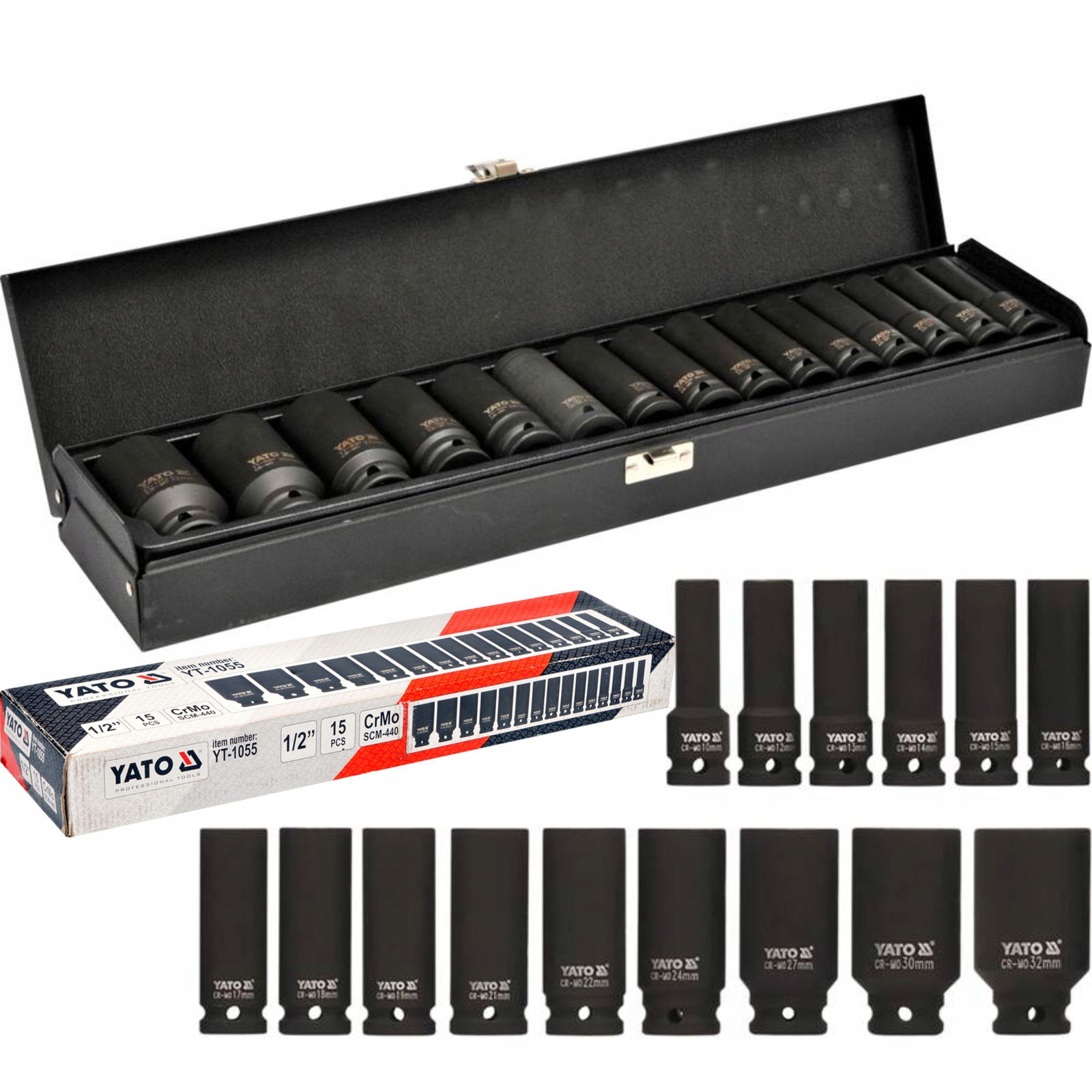 YATO ZESTAW KOMPLET NASADKI KLUCZE UDAROWE DŁUGIE 1/2 15 EL WALIZKA YT-1055