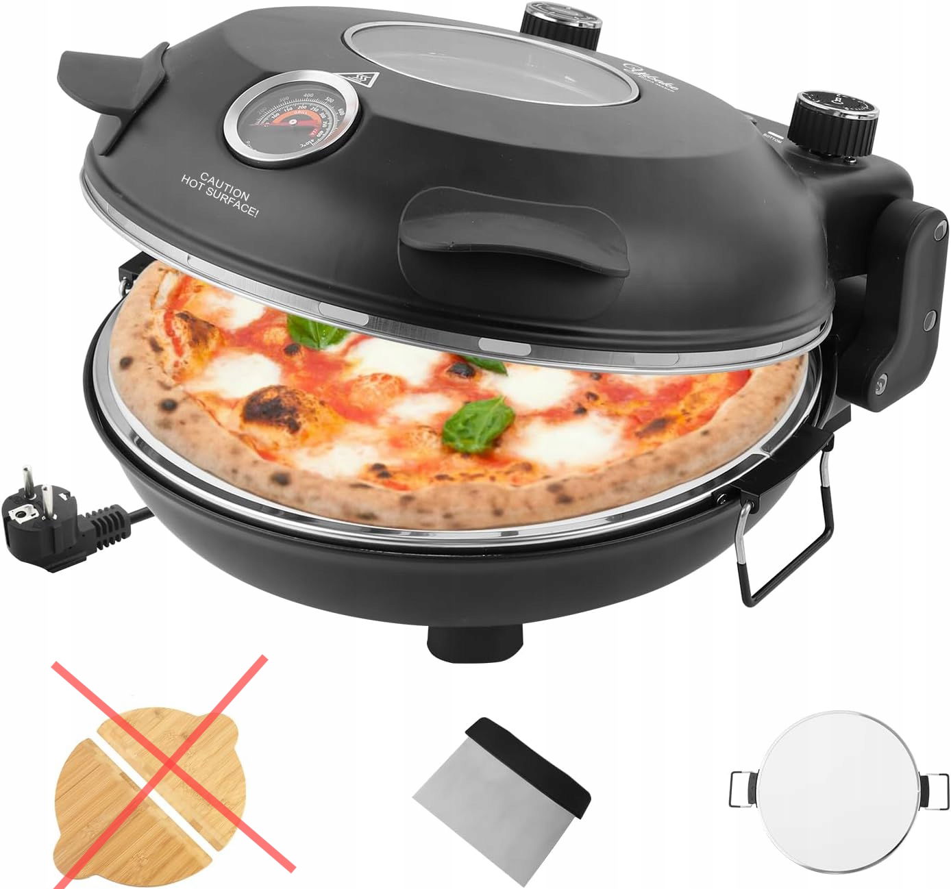 Ciesz się obserwacją gotującej się pizzy przez okno bez otwierania pokrywy. Wzbogać swoje kulinarne doświadczenia i delektuj się autentycznym smakiem w każdej chwili!