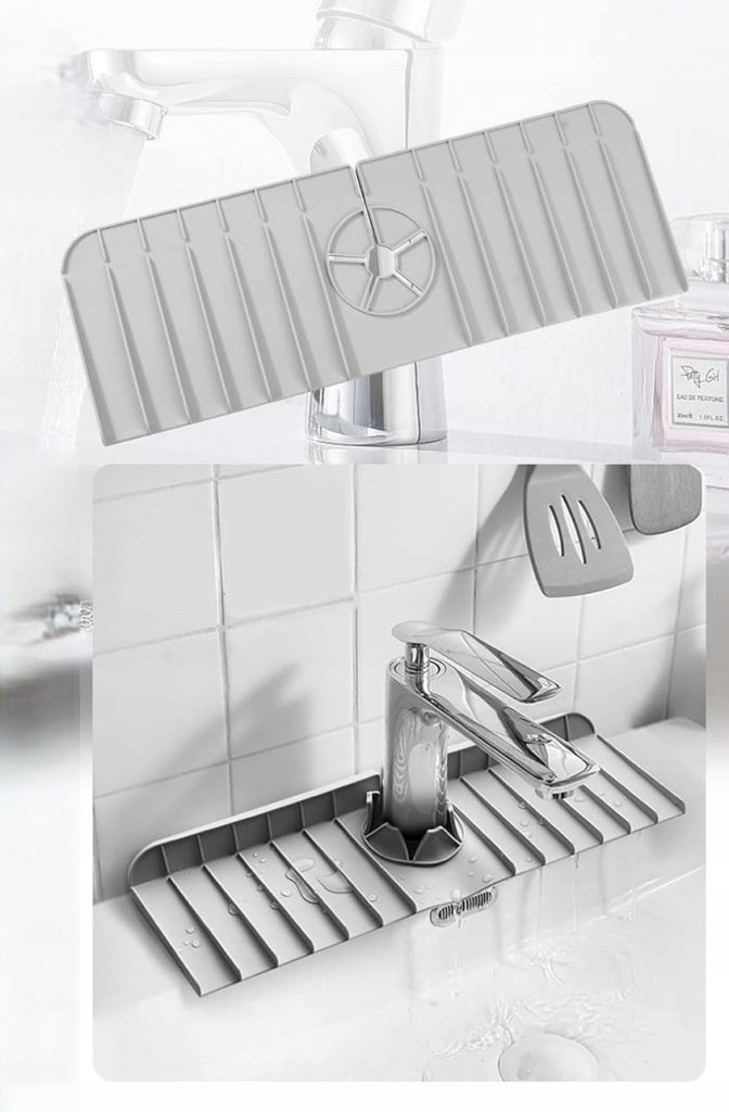 ⭐Wielofunkcyjne zastosowanie – oprócz zmniejszenia rozprysków, wypukłe rowki na powierzchni maty mogą umieścić przedmioty kuchenne i łazienkowe i utrzymać je w suchości. Kuchnia: Umieść na nim gąbki, płyn do mycia naczyń, środki czyszczące, szczotki i butelki. Łazienka: włóż środek do czyszczenia twarzy, golarkę, kubek na szczoteczki do zębów, mydło itp. Używana jako mała mata organizacyjna, podkładka pod umywalkę.