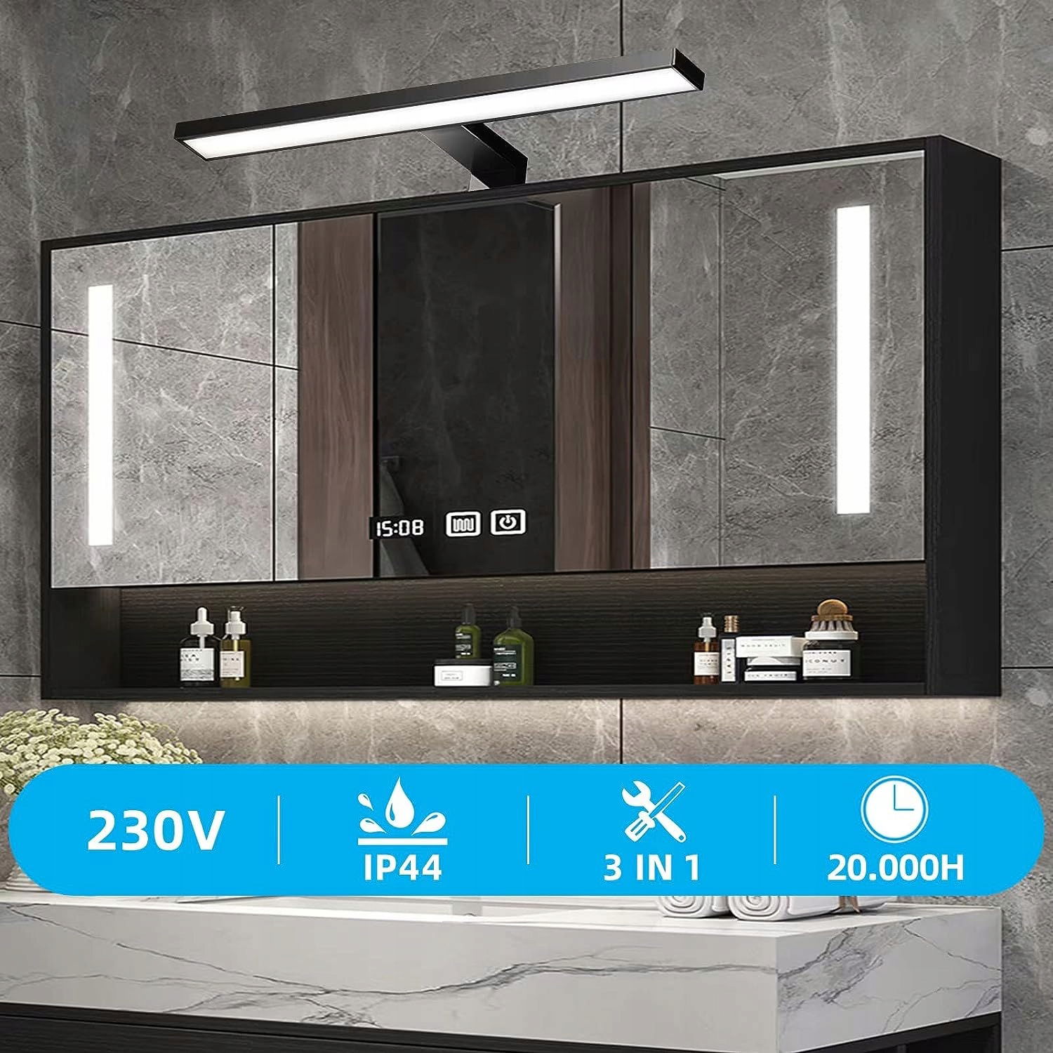 - IP44 Wodoodporne światło lustrzane: To światło lustrzane jest wykonane z aluminium i wysokiej jakości ekranu PC. KLASA II, bez obaw o rozpryskiwanie wody. Oświetlenie lustrzane może być stosowane w łazienkach lub innych wilgotnych miejscach wewnętrznych, takich jak szafki z lustrem, łazienki, szafy, domy, hotele, biura itp.