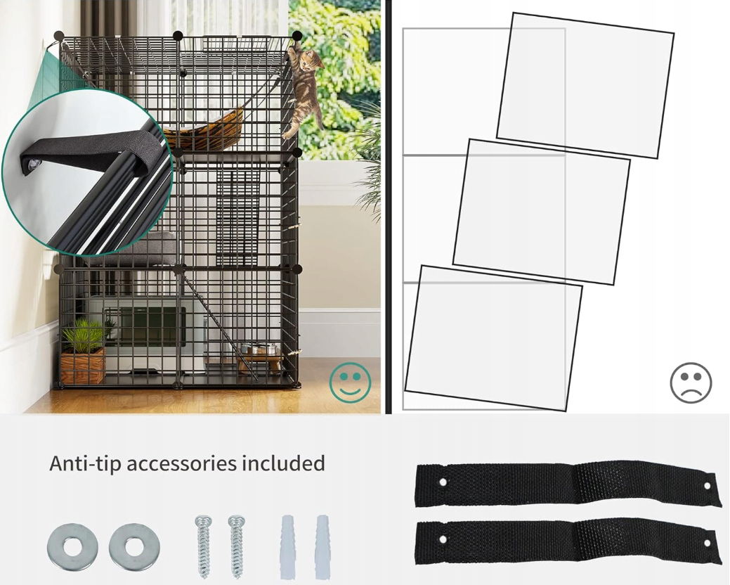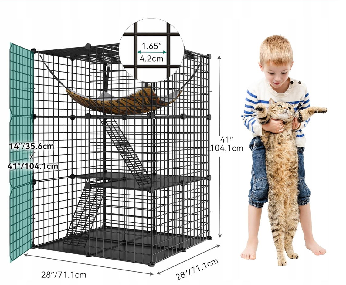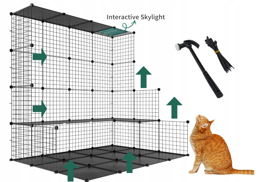 - ✴️Stabil mata podłogowa i trwały materiał – do tego kocia dołączone są łatwo zdejmowane czarne maty podłogowe, aby stworzyć nieskazitelne środowisko wewnętrzne, które pozostaje suche i czyste. Stabilne czarne żelazne ramy zapewniają dużą stabilność całej struktury i zapobiegają rozpraszaniu lub przechylaniu. Pogrubio, wytrzymała siatka żelaz służy do zapobiegania rdzewieniu i wydłużenia żywotności.