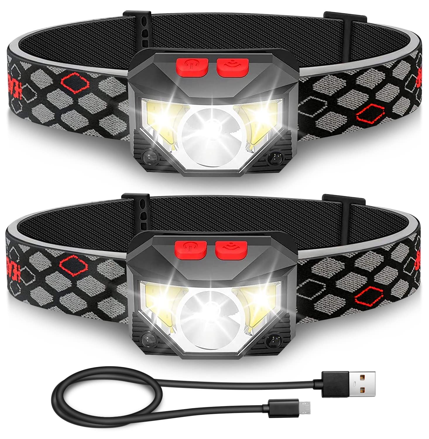 Yonii Lampa czołowa LED 2 sztuki 1000 lumenów 10 trybów 1200 mAh USB