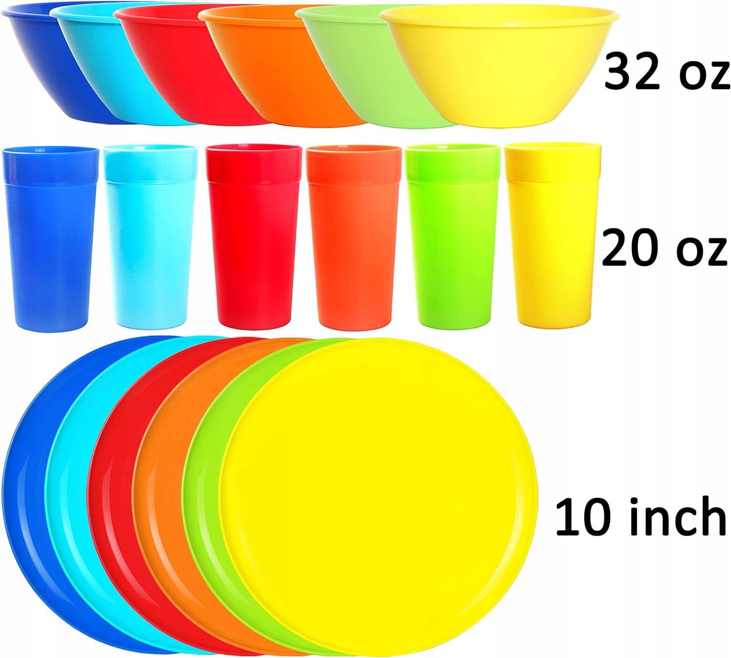Zamów teraz 18-elementowy zestaw plastikowych talerzy, misek i kubków w 6 kolorach i ciesz się praktycznością oraz stylem każdego dnia!