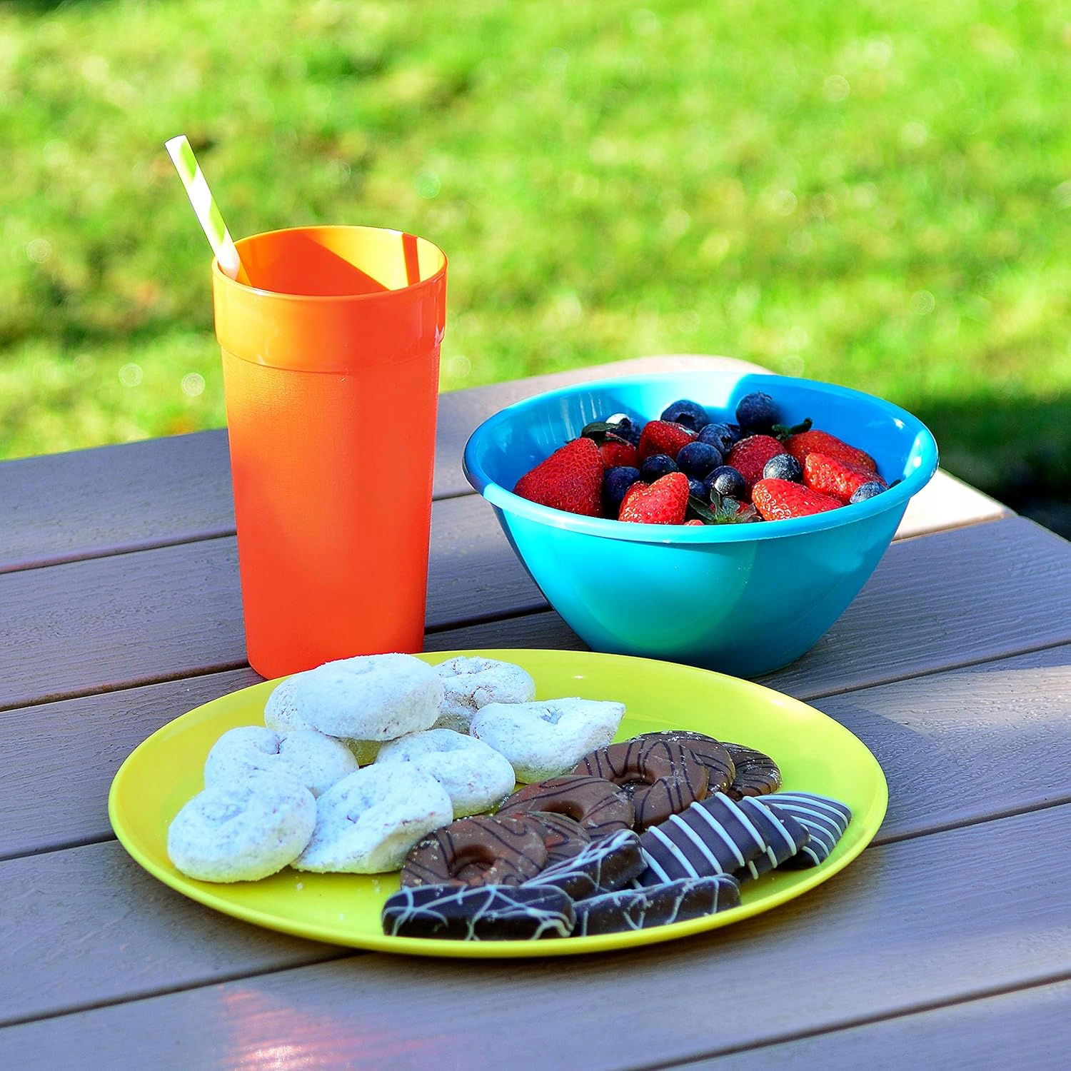 Youngever zestaw plastikowych talerzy, misek i kubków - 6 kolorów 18 szt