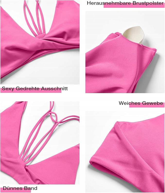 Design: Unikalny design i seksowny, skręcony dekolt sprawiają, że krągłości są bardziej idealne. Wbudowana, wyjmowana wkładka zapewnia łatwą regulację i dodatkowe wsparcie.