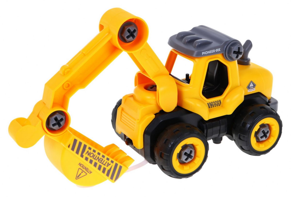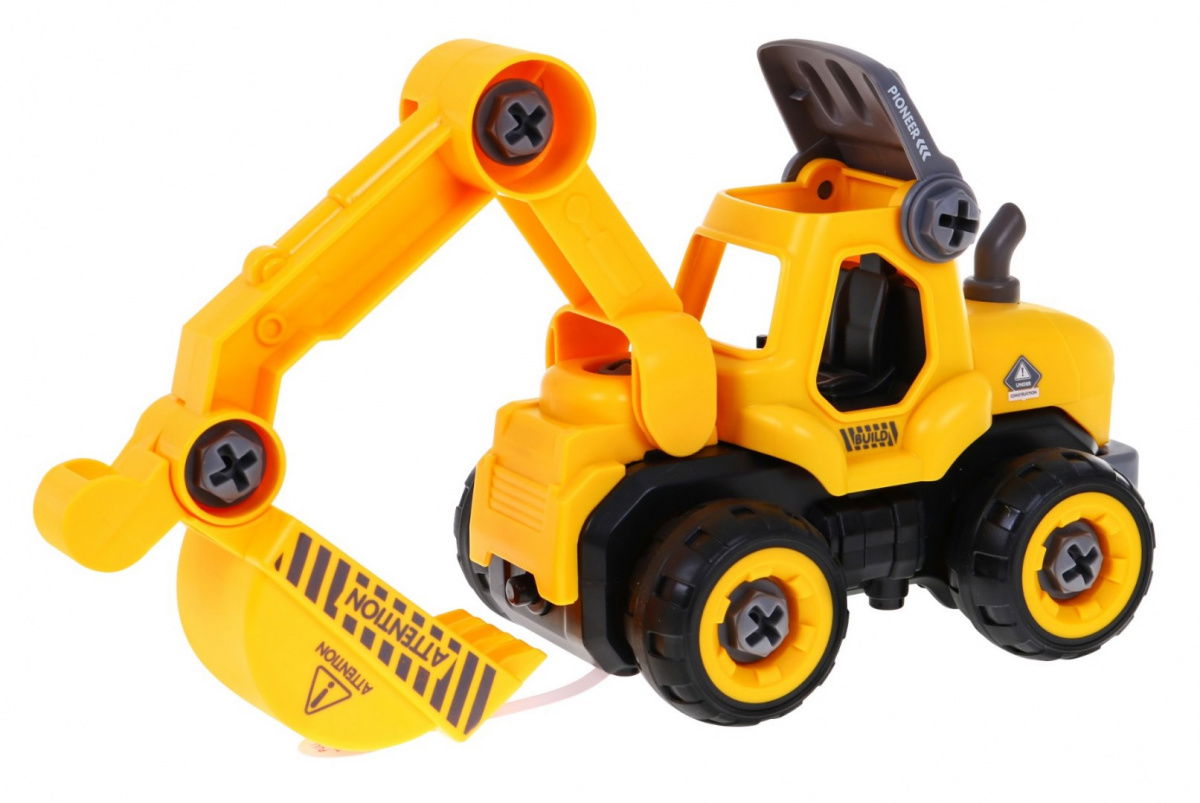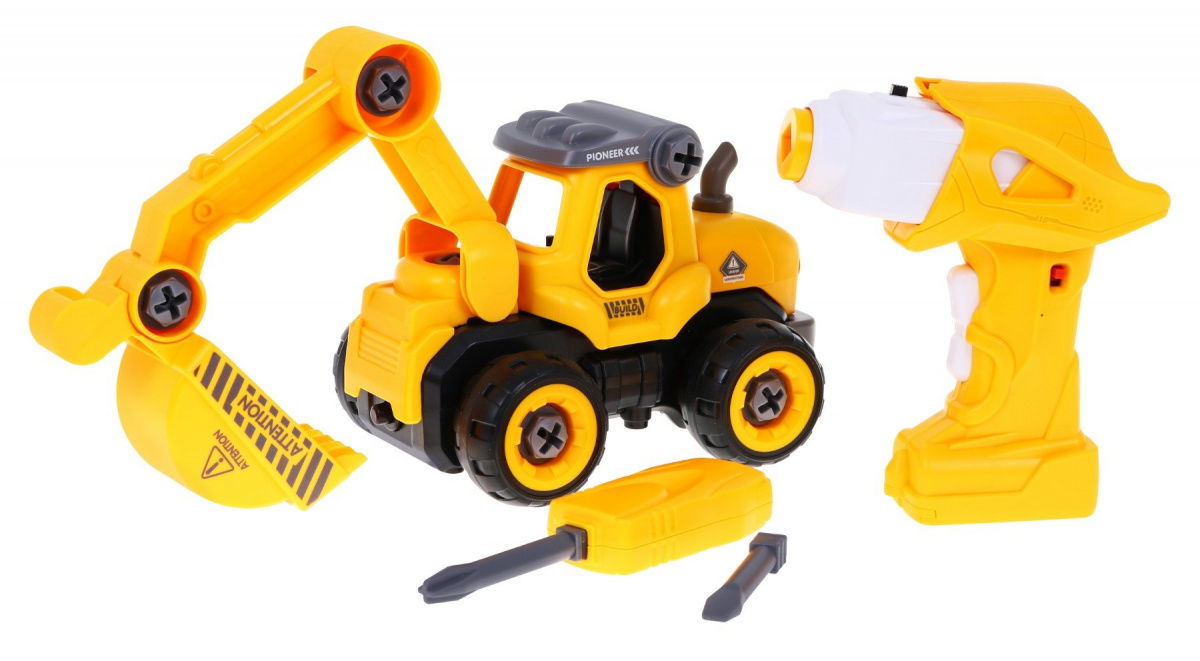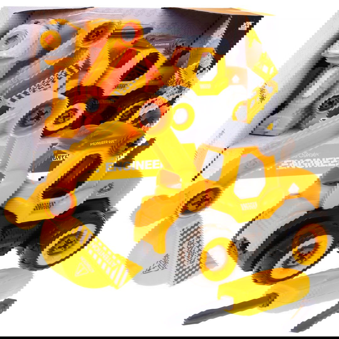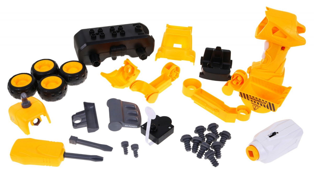 Ta interaktywna zabawka, koparka budowlana z dźwiękami, to niezwykłe narzędzie edukacyjne dla młodych konstruktorów. Zestaw zawiera aż 28 elementów, umożliwiających zbudowanie własnej koparki za pomocą dołączonego ręcznego śrubokręta lub elektrycznej wiertarki. Wiertarka posiada 2 wymienne końcówki, pełniące również funkcję śrubokręta ręcznego. Po zamontowaniu modułu wiertarki, koparka ożywa, poruszając się do przodu i do tyłu. Realistyczne dźwięki jazdy i klaksonu dodają realizmu, podczas gdy odgłos wiercenia dodaje dynamizmu zabawie. Zabawka nie tylko zapewnia mnóstwo zabawy, ale także rozwija wyobraźnię i zdolności manualne dziecka. Zalecana dla dzieci powyżej 3. roku życia. Baterie typu 3 x AG dla koparki (w zestawie) oraz 2 x AA dla modułu wiertarki i wiertarki (brak w zestawie) są niezbędne do działania. W zestawie znajdują się części składowe koparki, wiertarka, moduł do wiertarki, 2 końcówki do wiertarki/śrubokręta, rączka od śrubokręta ręcznego oraz instrukcja złożenia. Po złożeniu, koparka ma wymiary około 29 cm x 16 cm x 11 cm. Zabawka zapakowana jest w opakowanie o wymiarach około 33 cm x 20 cm x 13,5 cm, które można łatwo przechowywać. Dzięki tej kreatywnej zabawce, dzieci mogą rozwijać swoje umiejętności i cieszyć się ak