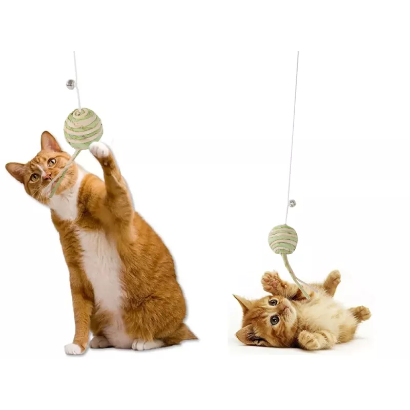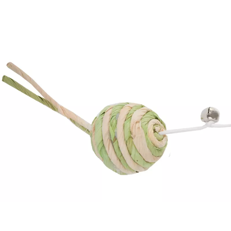 Piłka przymocowana do wędki jest wykonana z szeleszczącego papieru. przyciągającego uwagę, zachęcając kota do interakcji i aktywności.