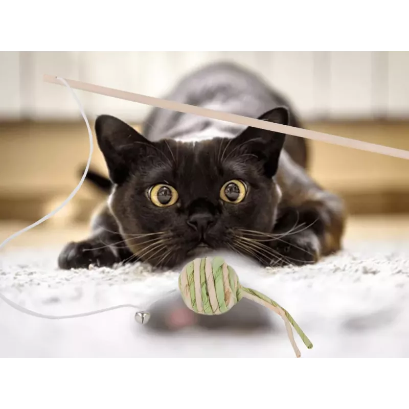 Zabawka przeznaczona jest dla kotów, które uwielbiają się bawić i psocić. Dzięki tej atrakcji nie będą się nudzić. Jest to alternatywa dla polowań w naturalnym środowisku, a zarazem świetna zabawa dla naszego pupila. Kij wykonany z drewna, który jest jednocześnie lekki i wytrzymały, umożliwiając