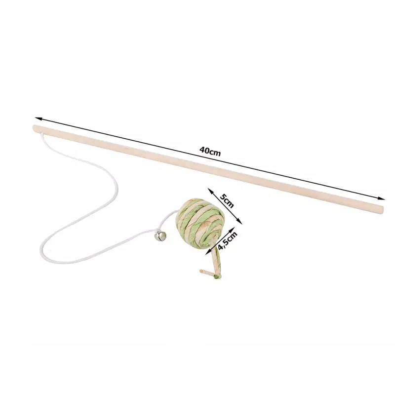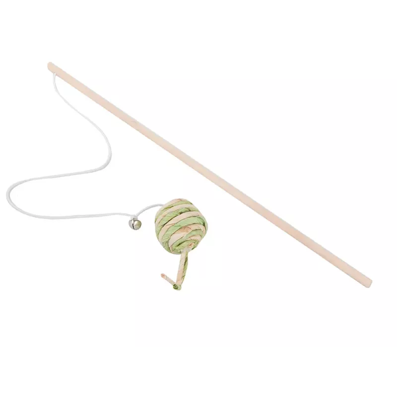 Kij wykonany z drewna, który jest jednocześnie lekki i wytrzymały, umożliwiając dynamiczną i ekscytującą zabawę dla kota.