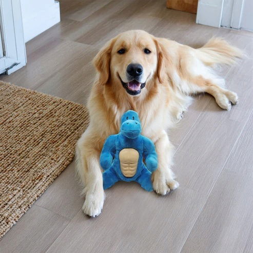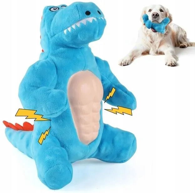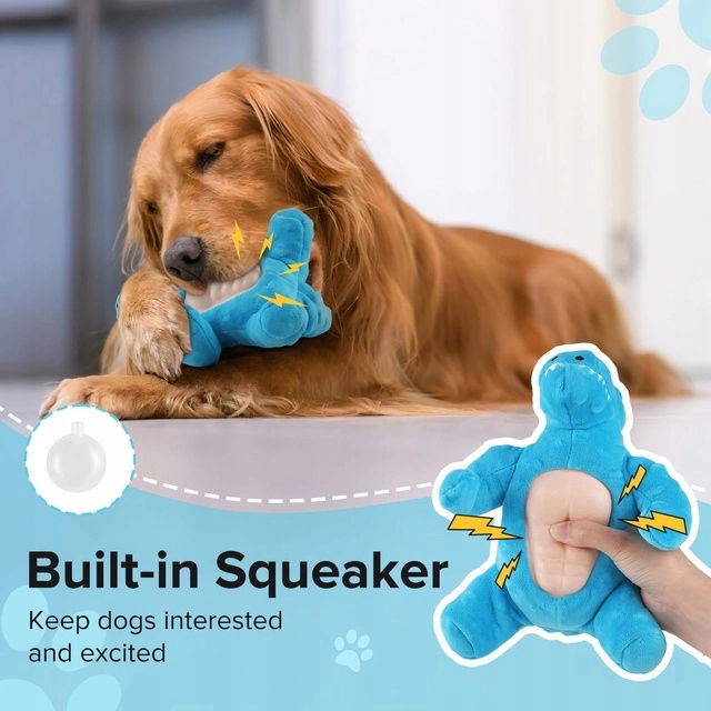 Wesoły niebieski dinozaur z zabawnym, muskularnym brzuchem stanie się najlepszym towarzyszem Twojego pupila – zarówno do przytulania, jak i do aktywnej zabawy.
