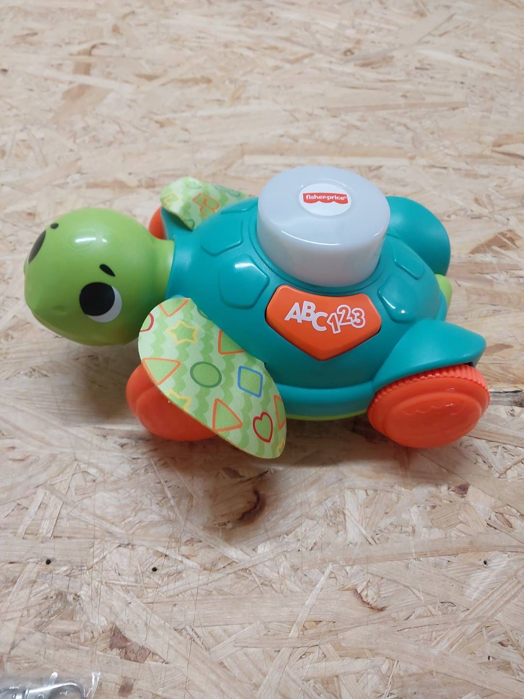 Żółw morski świeci, a po naciśnięciu przetacza się do przodu i mówi, zachęcając dzieci do raczkowania za nim