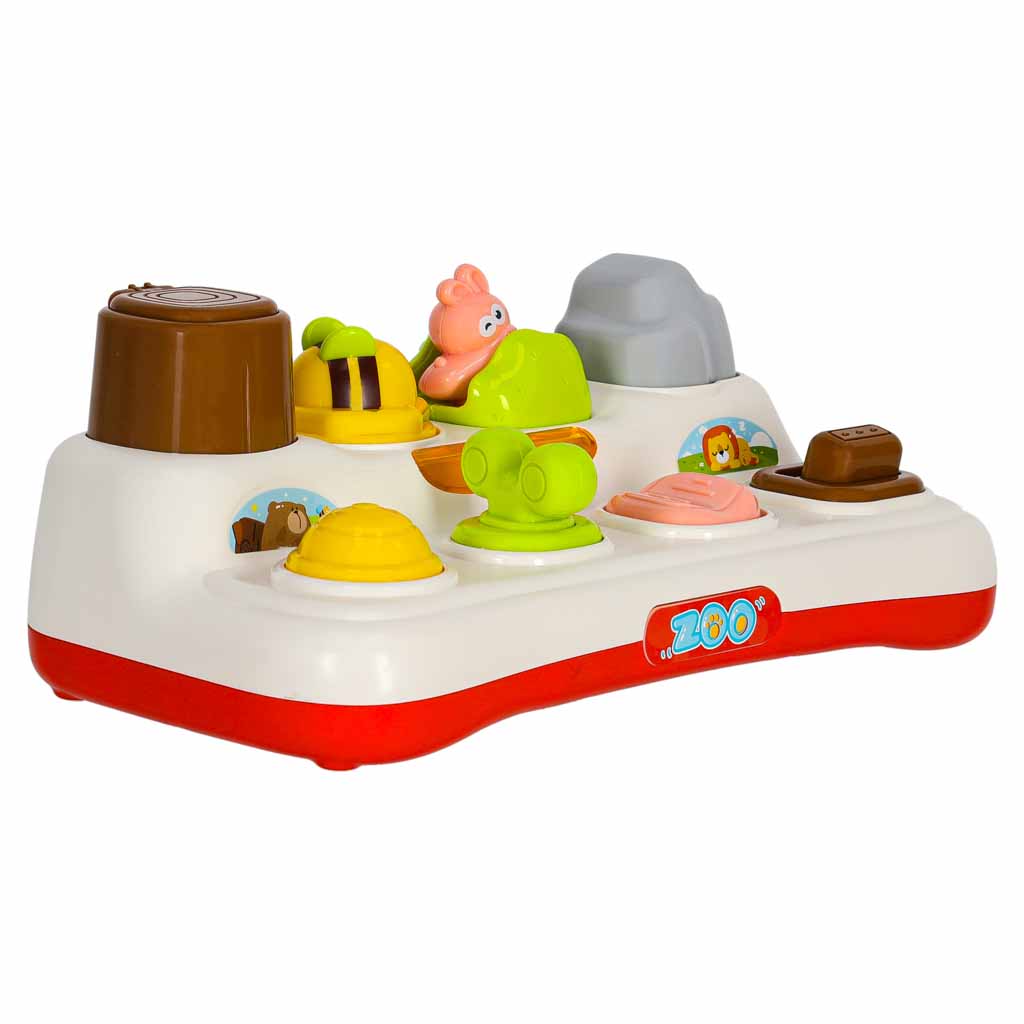 - Stymulacja zmysłów i ciekawości poznawczej - kolorowe zwierzątka i cztery interaktywne przyciski przyciągają uwagę, zachęcają do eksperymentowania i dalszego odkrywania
