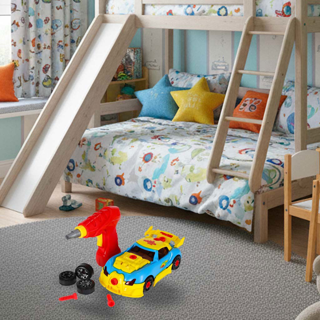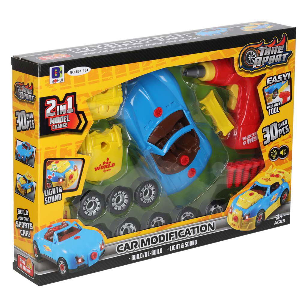 Oto sportowy samochód, który nie tylko zapewni Ci mnóstwo frajdy, ale także pozwoli na rozwijanie swoich umiejętności technicznych! Ten model do samodzielnego złożenia i tuningu posiada realistyczne dźwięki silnika oraz świecące lampy, które sprawiają, że zabawa staje się jeszcze bardziej ekscytująca. W zestawie znajdziesz zabawkową wkrętarkę oraz śrubki, co pozwoli Ci spersonalizować auto według własnych preferencji lub szybko wymienić koła na zapasowe. Teraz masz okazję poczuć się jak prawdziwy mechanik samochodowy! Wymiary samochodu to 20 cm x 10,5 cm x 7,5 cm, co zapewnia idealne proporcje do zabawy. Odkryj świat tuningu i zapewnij sobie niezapomniane chwile pełne kreatywności i emocji!