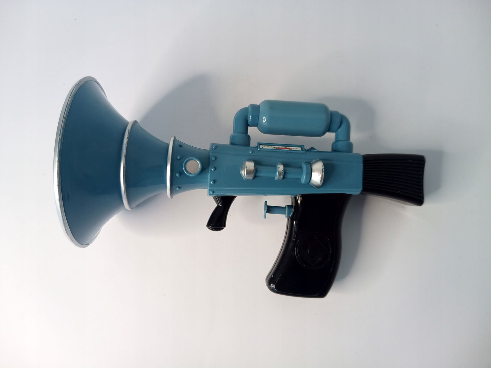 Nie jest to zabawka na baterię. Posiada otwór do którego dostaje się powietrze. Bardziej trzeba liczyć na wyobraźnię dziecka niż rzeczywiste wzmocnienie głosu.