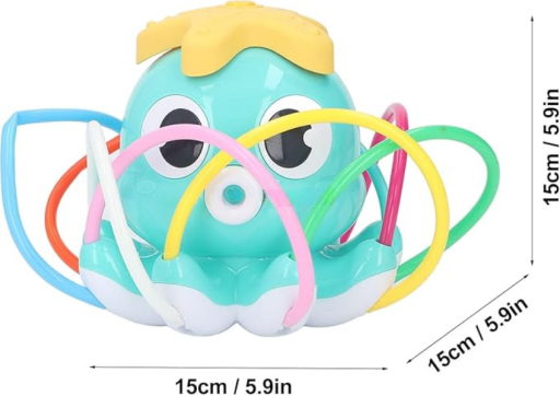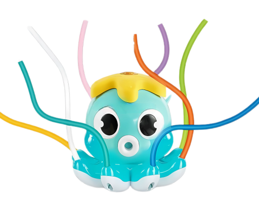 Ośmiornica wyposażona jest w 8 elastycznych, wirujących ramion, które w efektowny sposób rozpryskują wodę we wszystkich kierunkach. Każde z ramion porusza się w różnym tempie i kierunku, co sprawia, że strumienie wody są całkowicie nieprzewidywalne – a to gwarantuje mnóstwo śmiechu i frajdy. Zabawka przyciąga uwagę intensywnymi kolorami i sympatycznym wyglądem, dzięki czemu dzieci chętnie do niej wracają.