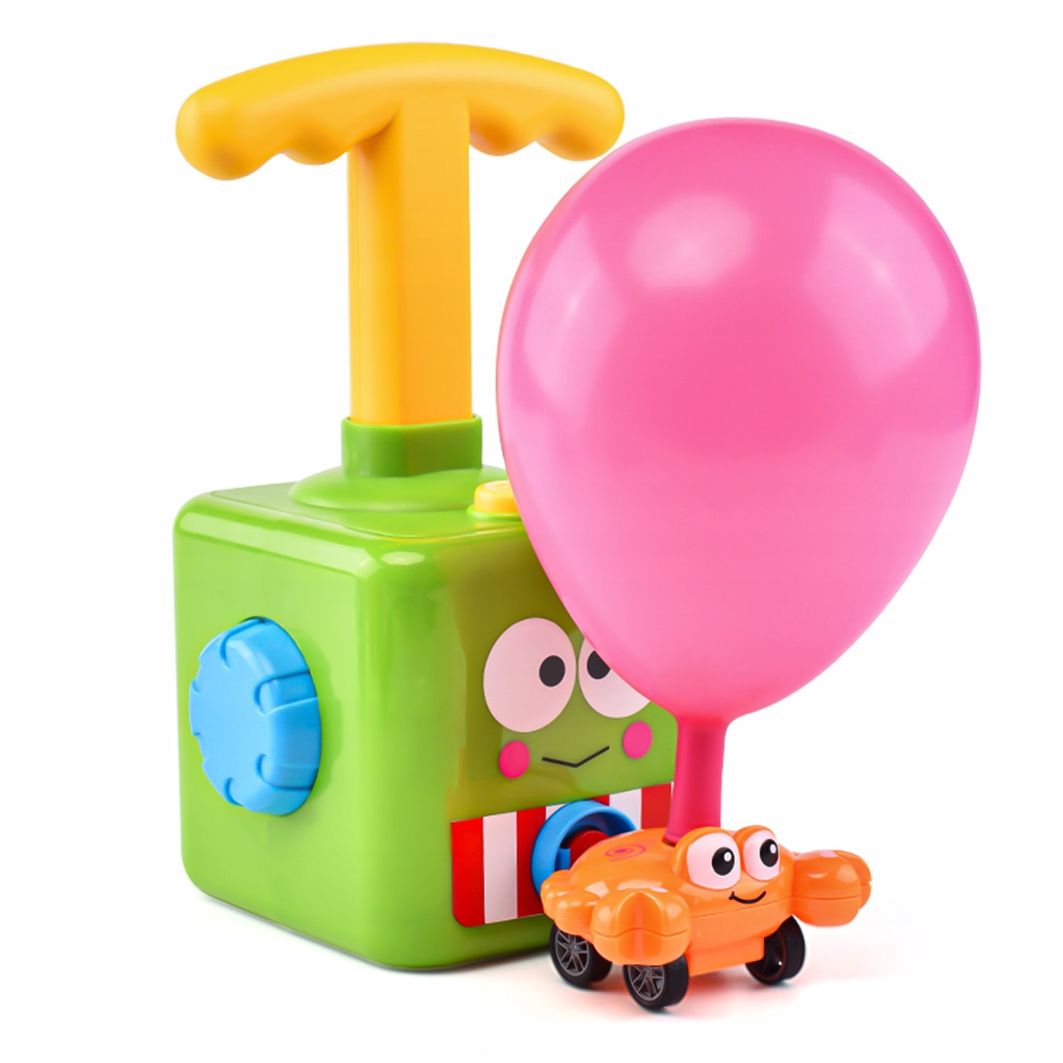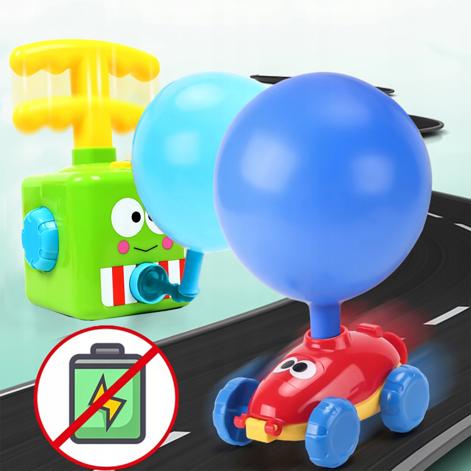 8️⃣ Po naciśnięciu przycisku samochód zacznie się ruszać napędzany powietrzem z napompowanego balonu.
