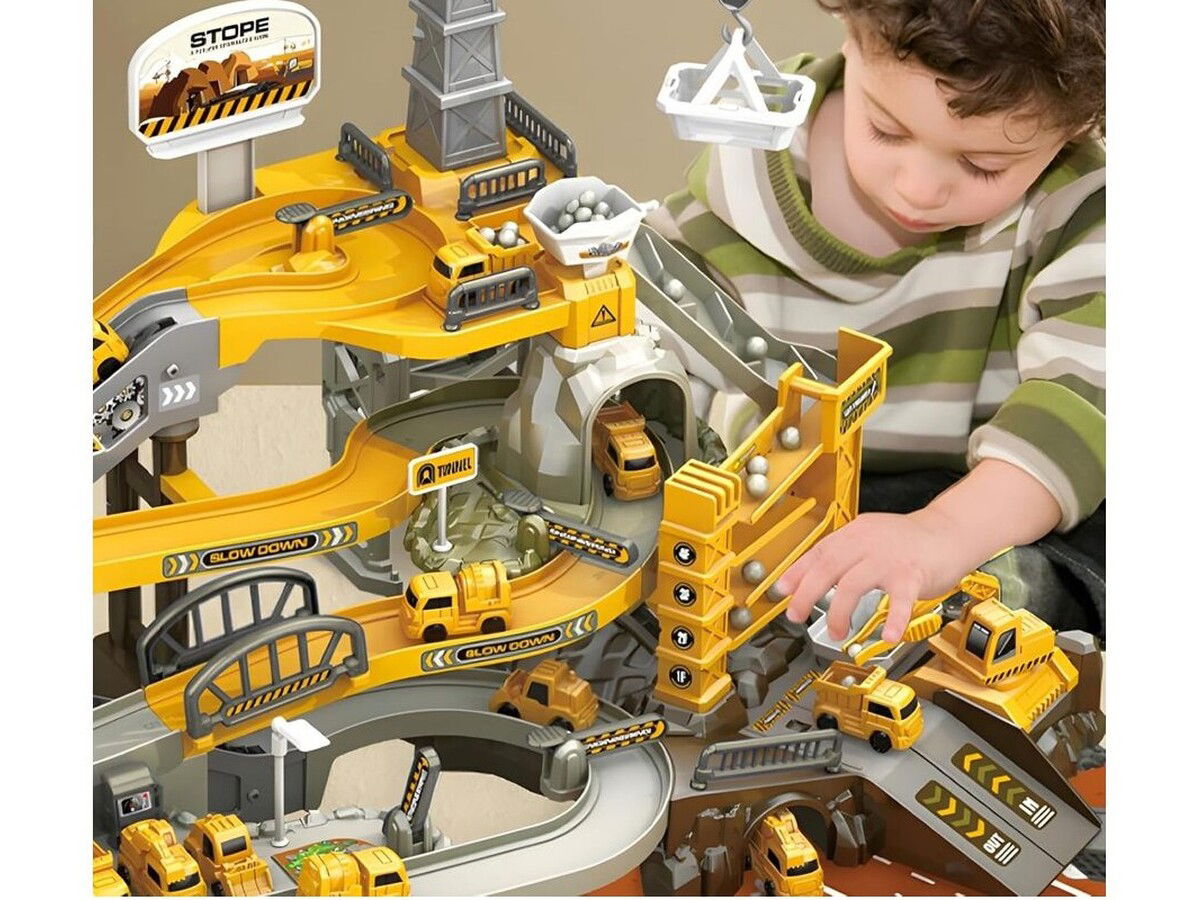 Odkryj niesamowity świat placu budowy z zestawem zjeżdżalni samochodowych Tor Kulkowy PLAC BUDOWY! Ten kreatywny zestaw zapewni Twojemu maluchowi wiele godzin rozrywki i fascynujących zabaw. Z wielopoziomowym torem, elektrycznym podjazdem i mnóstwem dodatkowych atrakcji, każda chwila spędzona na zabawie będzie pełna radości i ekscytacji. Zestaw zawiera 4 samochodziki, kulki, akcesoria takie jak znaki drogowe czy stacja benzynowa, a także obrazkową instrukcję składania. Dzięki efektom dźwiękowym i wysokiej jakości wykonaniu z bezpiecznego tworzywa, Twoje dziecko będzie mogło cieszyć się kreatywną zabawą w pełni bezpieczny sposób. Zestaw Tor Kulkowy PLAC BUDOWY to doskonały sposób na rozwijanie wyobraźni i sprawności manualnych u dzieci powyżej 3 roku życia. Pozwól maluchowi na fascynującą zabawę, która rozbudzi w nim pasję do konstrukcji i motoryzacji!