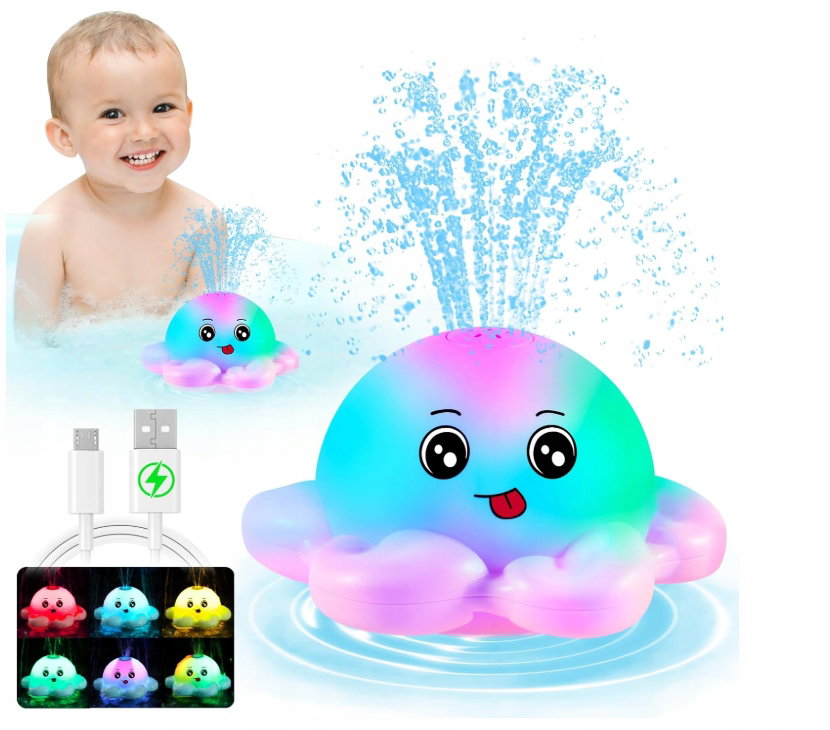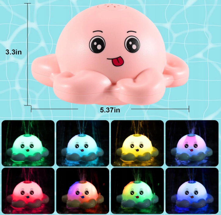 - ✴️Uprzyjemnianie kąpieli: Urocze, podświetlane zabawki do kąpieli w kształcie ośmiornicy dla niemowląt wyposażone są w spryskiwacz i kolorowe migające światełka. Po umieszczeniu w wannie, te zabawki naturalnie przyciągną uwagę Twojego dziecka. Dzięki zraszaczowi do kąpieli w kształcie ośmiornicy, maluchy będą podekscytowane i będą się cieszyć każdą kąpielą. Idealne zabawki do kąpieli dla dzieci w wieku 1-3 lat, niemowląt, chłopców i dziewczynek.