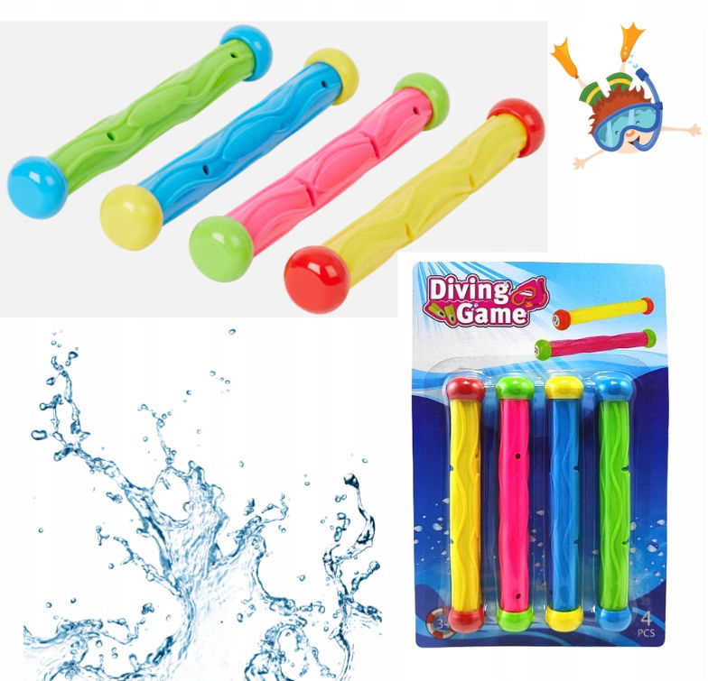 ZABAWKI DO NAUKI NURKOWANIA W WODZIE KOLOROWE PAŁECZKI ZESTAW 4 SZTUKI