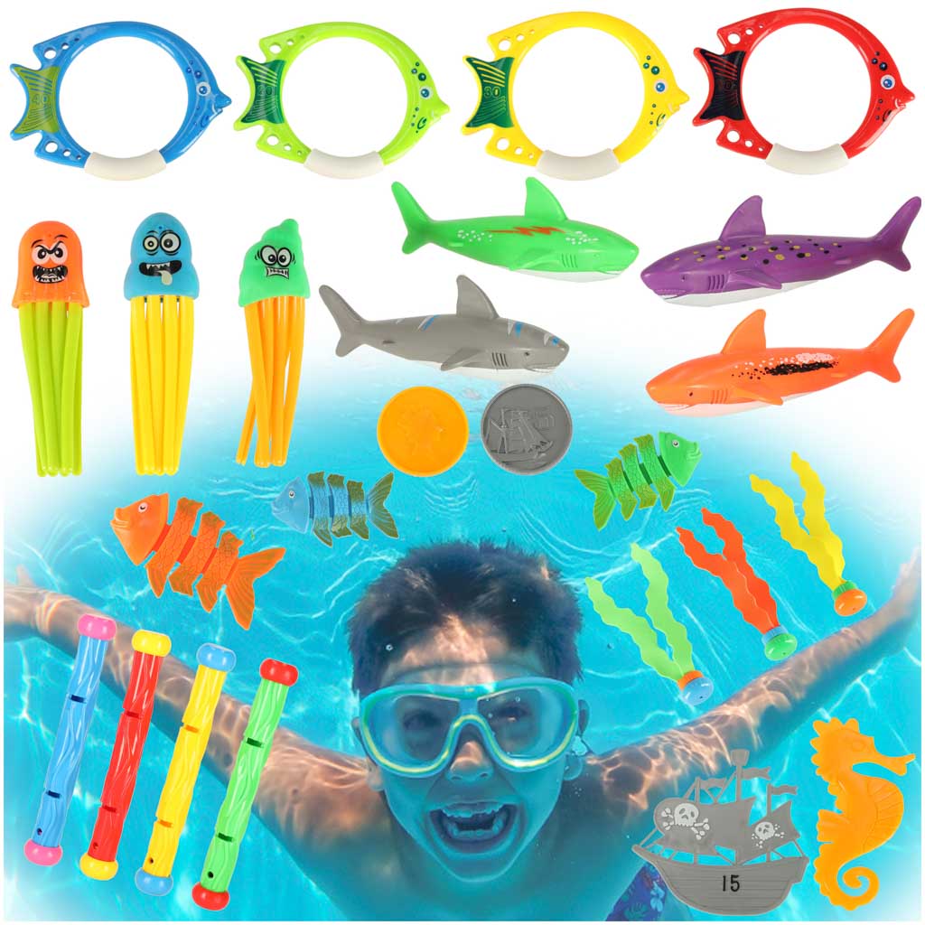 Zabawki do Nurkowania dla Dzieci do Basenu i Kąpieli Zestaw 27 el z Workiem