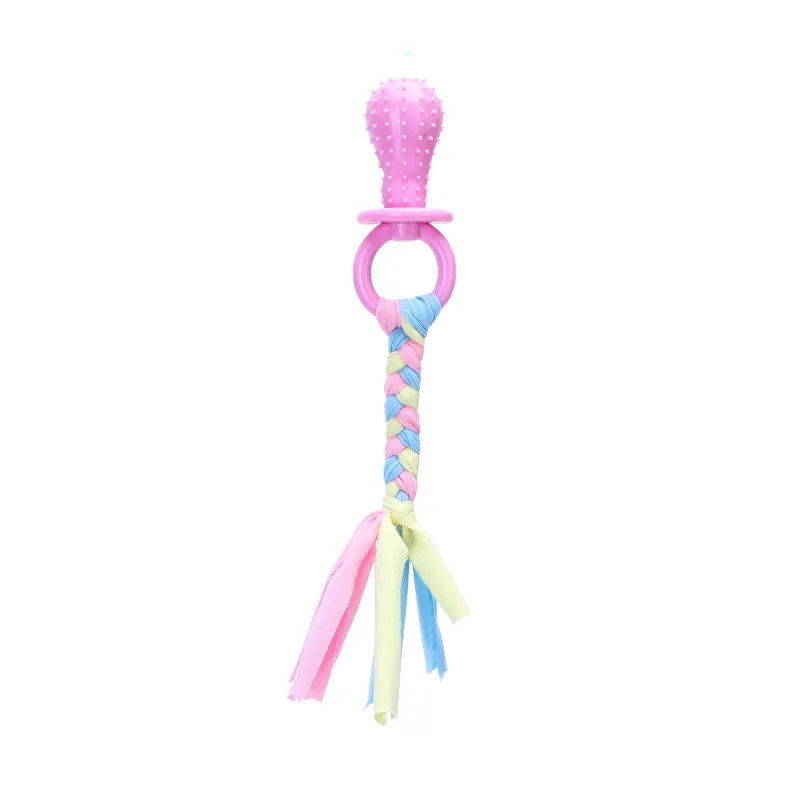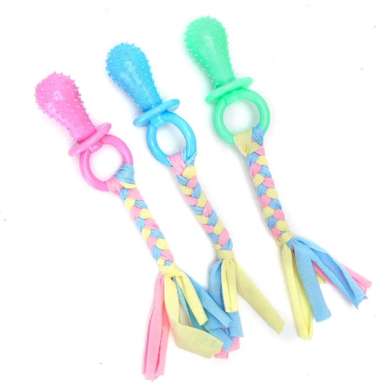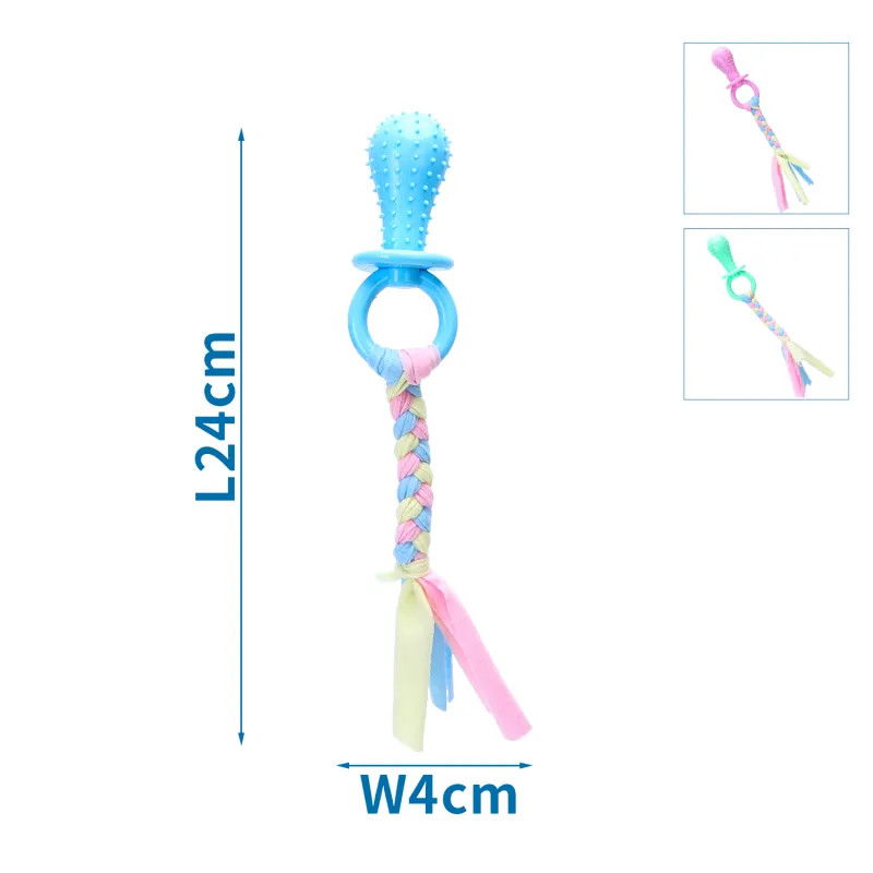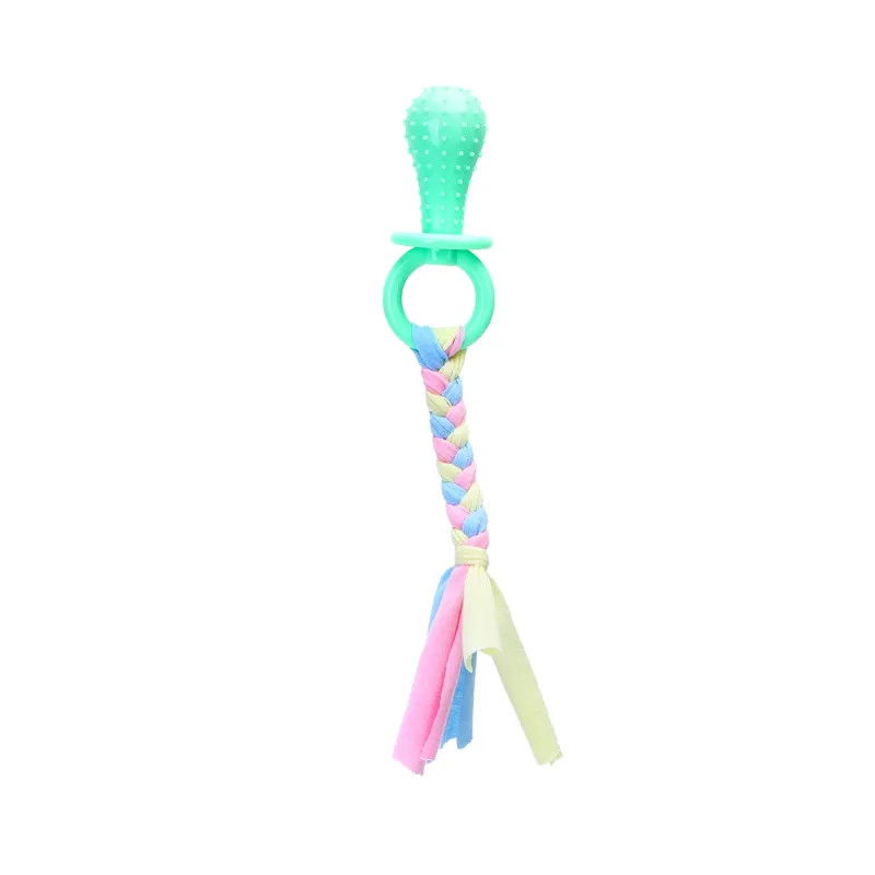 Materiał TPR przyjazny dla środowiska, nietoksyczny i nieszkodliwy, miękki i odpowiedni do żucia, odporny na zużycie i gryzienie. Powierzchnia ma wystające cząsteczki, które pomagają w czyszczeniu zębów. Dopasowanie kolorów Macaron jest świeże i urocze. Skręcona lina jest piękna i mocny, niełatwy do złamania