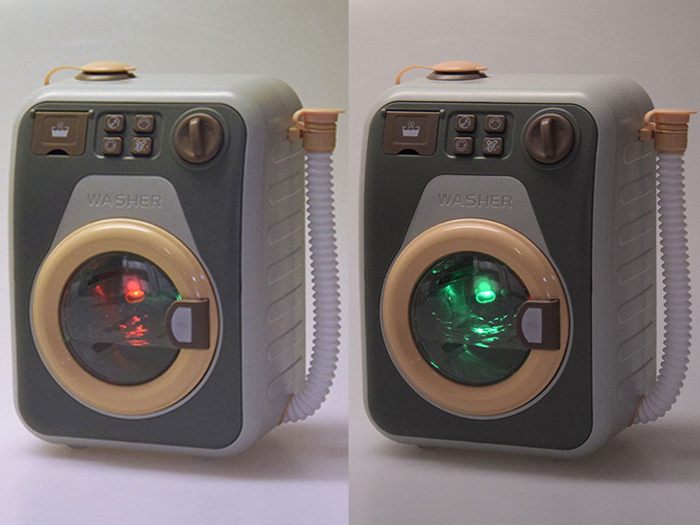 Pralka wykonana z wysokiej jakości plastiku w kolorze oliwkowym, z jaśniejszymi bokami i nowoczesnym panelem dotykowym, przyciągnie uwagę każdego malucha. Dzięki tej zabawce dzieci mogą naśladować dorosłych w codziennych czynnościach, czerpiąc radość z realistycznej symulacji prania.