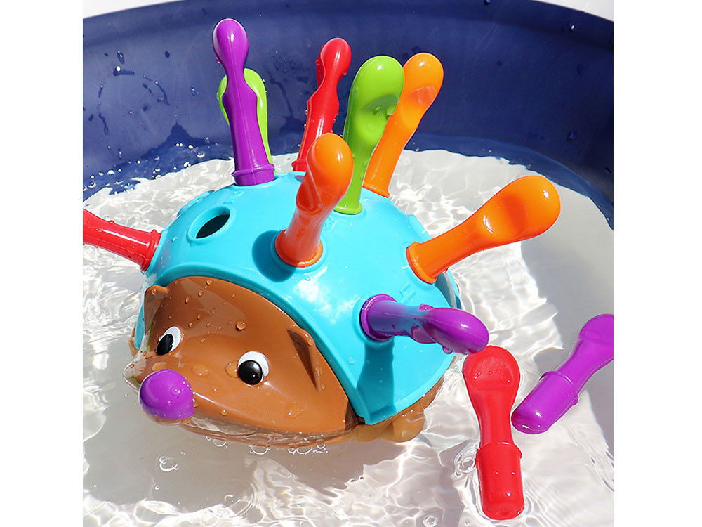 Zabawa z tym jeżem zapewnia naukę kolorów, liczenia oraz rozwijanie sprawności manualnej. Zabawka ma wymiary 20 x 14,5 x 10 cm, a długość każdego kolca to 9,5 cm. Jest estetyczna, bezpieczna i zapewnia mnóstwo kreatywnej zabawy dla każdego dziecka.