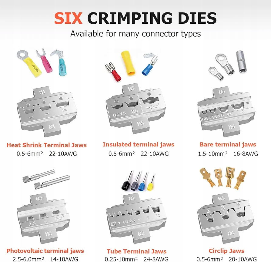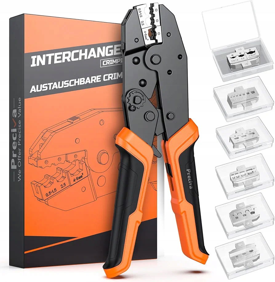 Preciva Szczypce do zaciskania 6 szczęk, zestaw narzędzi do zaciskania drutu z grzechotką, do termokurczliwości, nylonu, nieizolowanych złączy, zacisków okuć