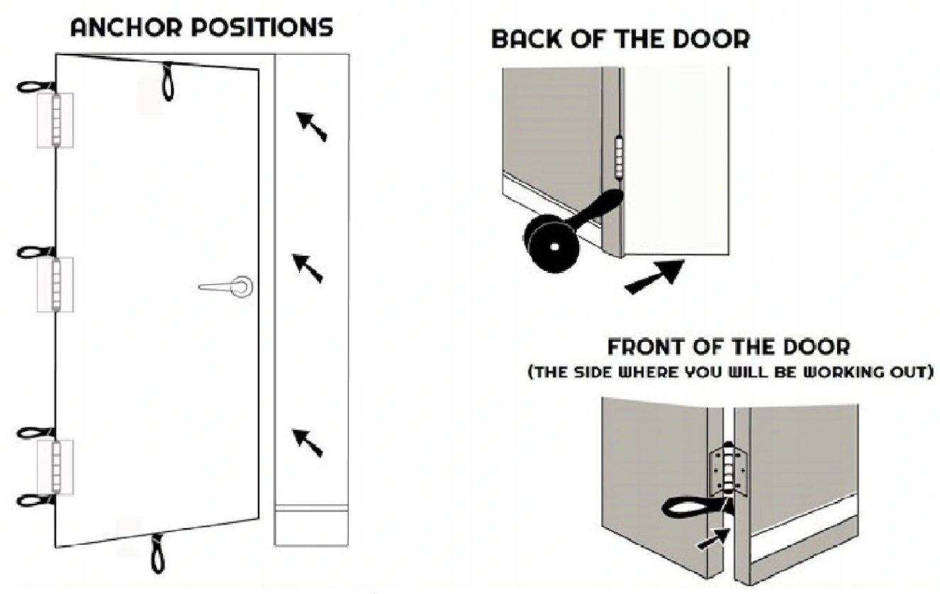 Zaczep do drzwi pozwala na przymocowanie różnego rodzaju gum oporowych, co ułatwia wykonanie treningu. Uchwyt daje możliwość zaczepienia gum na różnej wysokości drzwi. Dzięki temu, wykonywanie ćwiczeń w domu jest prostsze. Końcówka zaczepu wykonana jest z pianki, która zapobiega uszkodzeniu drzwi i dopasowuje się do każdego rodzaju gum oporowych.
