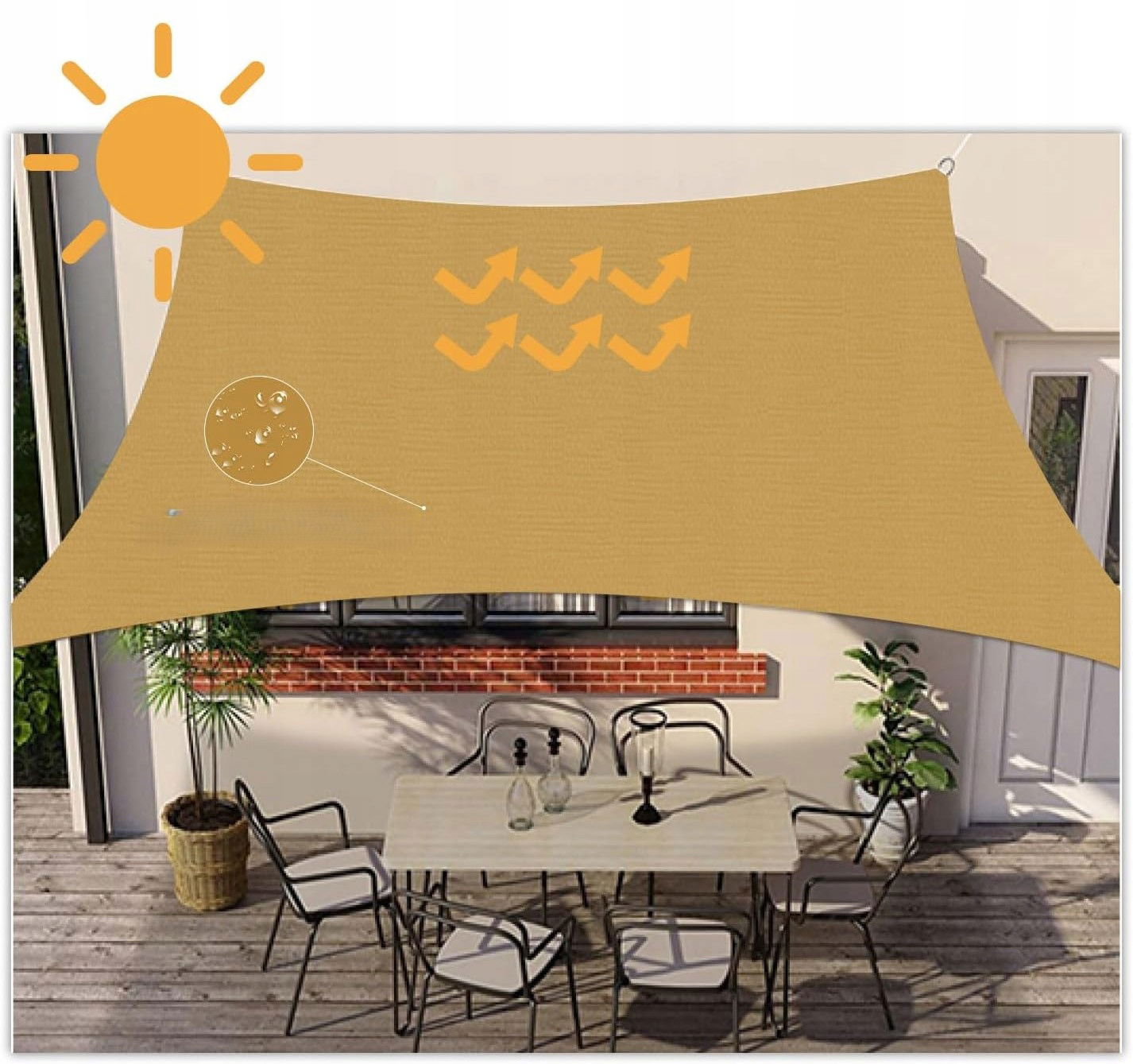 Stwórz komfortowy cień w ogrodzie lub na tarasie z płachtą przeciwsłoneczną HOMPER wykonaną z oddychającej tkaniny Oxford. Przeznaczona do stosowania na zewnątrz w słoneczne dni – idealna do ogrodu, balkonu, patio czy kempingu.