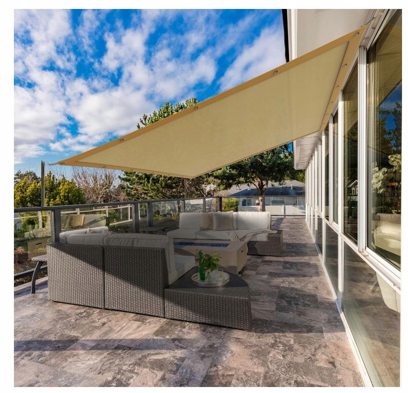 Zaprojektowane, aby blokować 70% światła słonecznego, nasze plandeki zaciemniające na zewnątrz zapewniają chłodne i wygodne wrażenia z osłony przeciwsłonecznej, idealne do stworzenia relaksującego środowiska na tarasie.