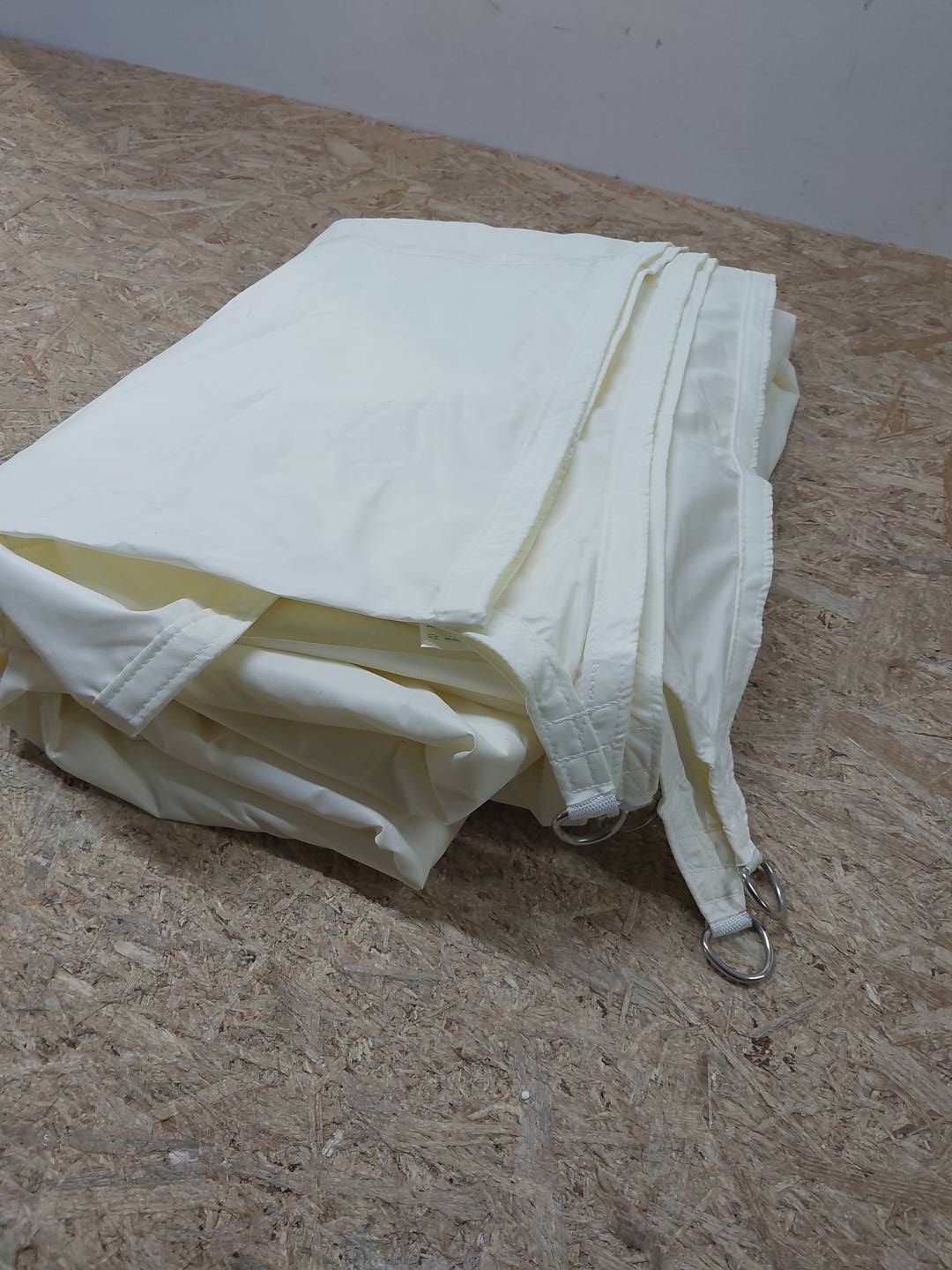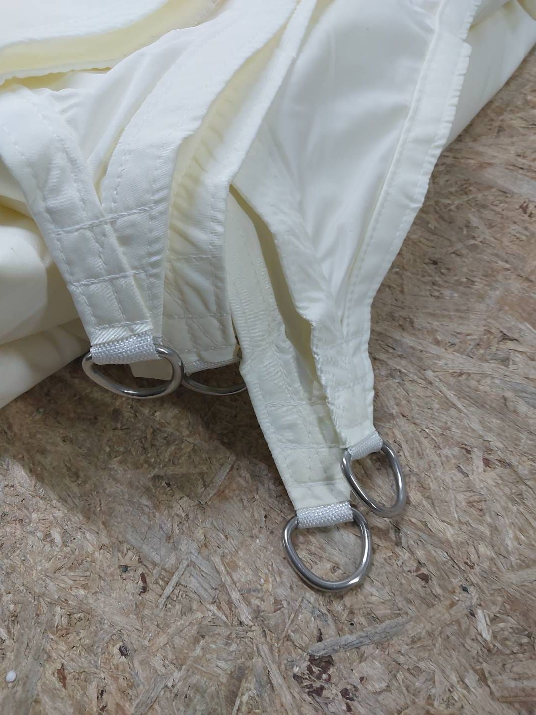 • Wymiary: 5 x 5 x 5 m (trójkąt równoboczny)• Kolor: beżowy• Materiał: poliester wodoodporny• Filtr UV: 95% ochrony przed promieniowaniem słonecznym• W zestawie: żagiel, zestaw mocowań (karabińczyki i linki)