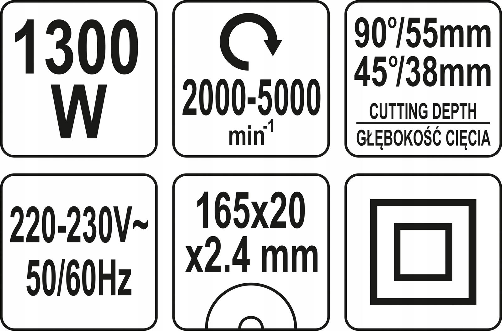 - głębokość cięcia 90°/45° 55mm/38mm
