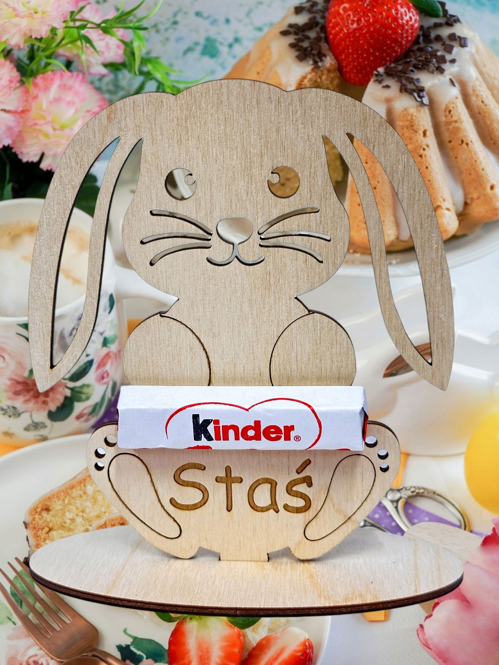 ZAJĄCZEK WIELKANOCNY STOJĄCY Z IMIENIEM KINDER RP153