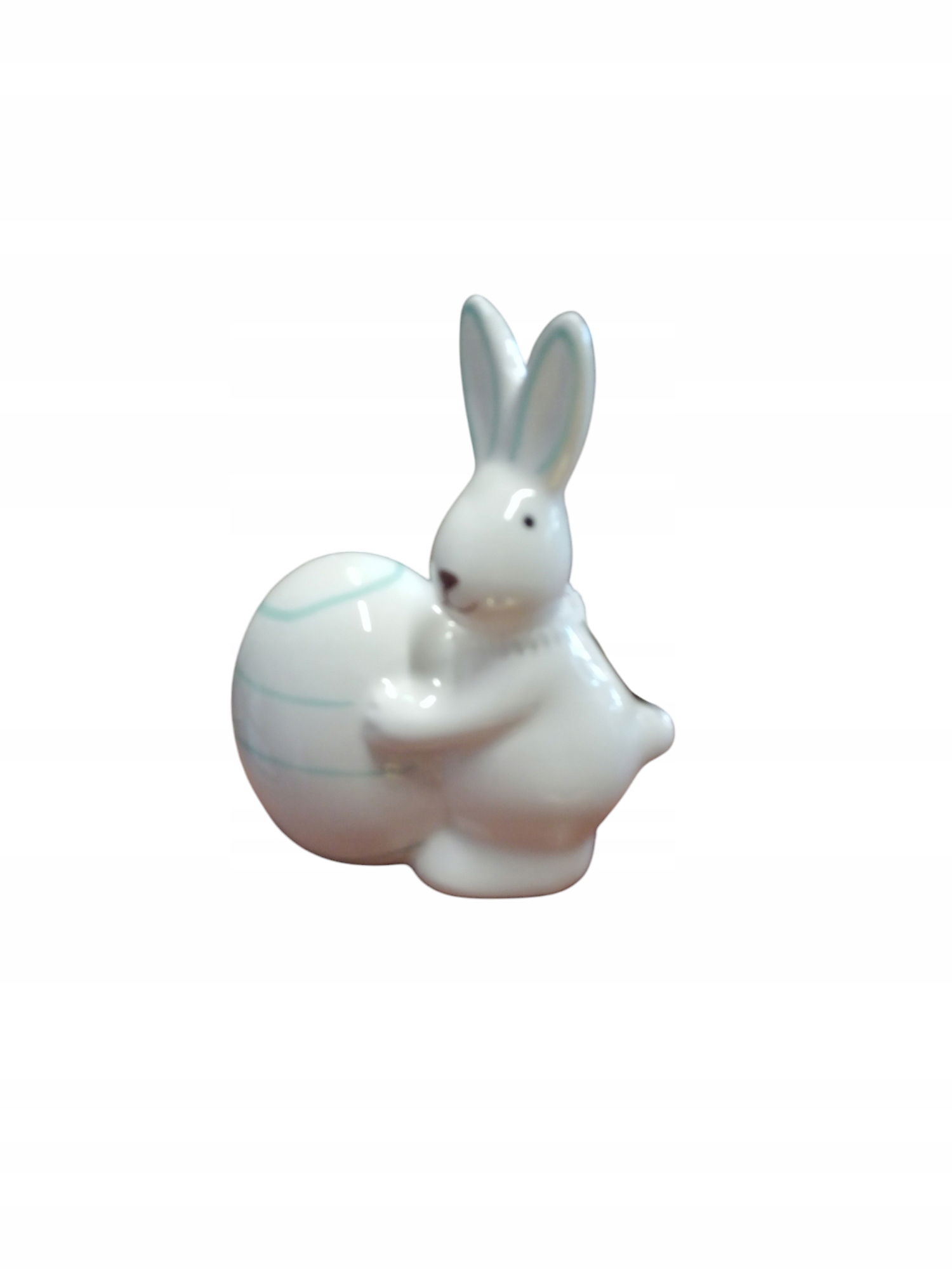 Urocza figurka zajączka to idealna dekoracja na Wielkanoc, która wprowadzi świąteczny klimat do Twojego domu. Wykonana z wysokiej jakości ceramiki, ozdoba prezentuje białego zajączka trzymającego jajko – symbol odrodzenia i nowego życia.